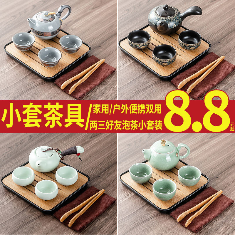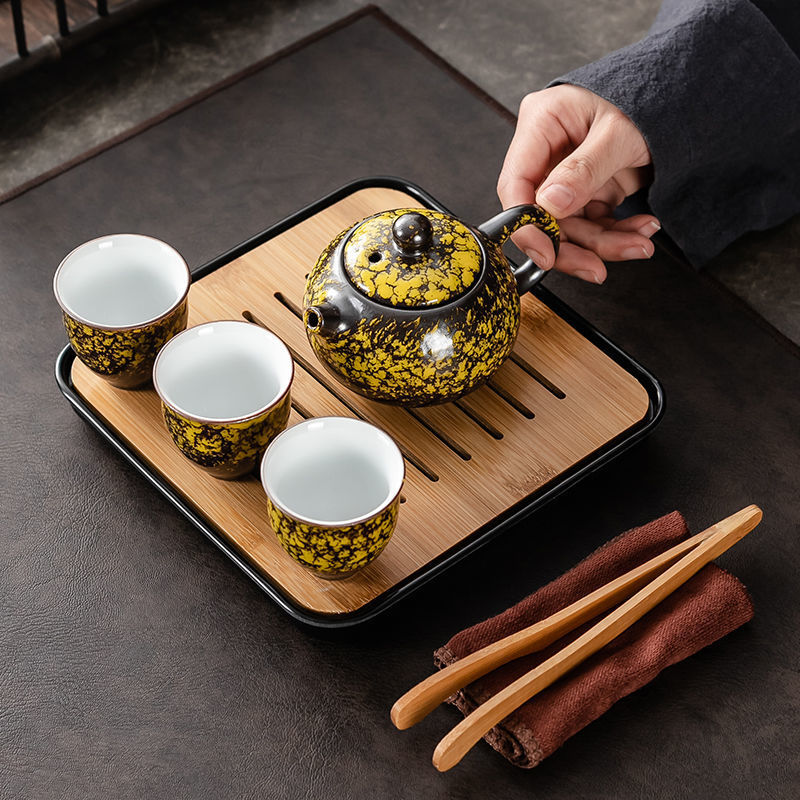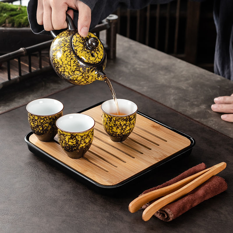 Набор для чая в стиле кунг-фу для домашнего приема, комплект из чайника, чашек, чашечек, подноса и простого чайного столика