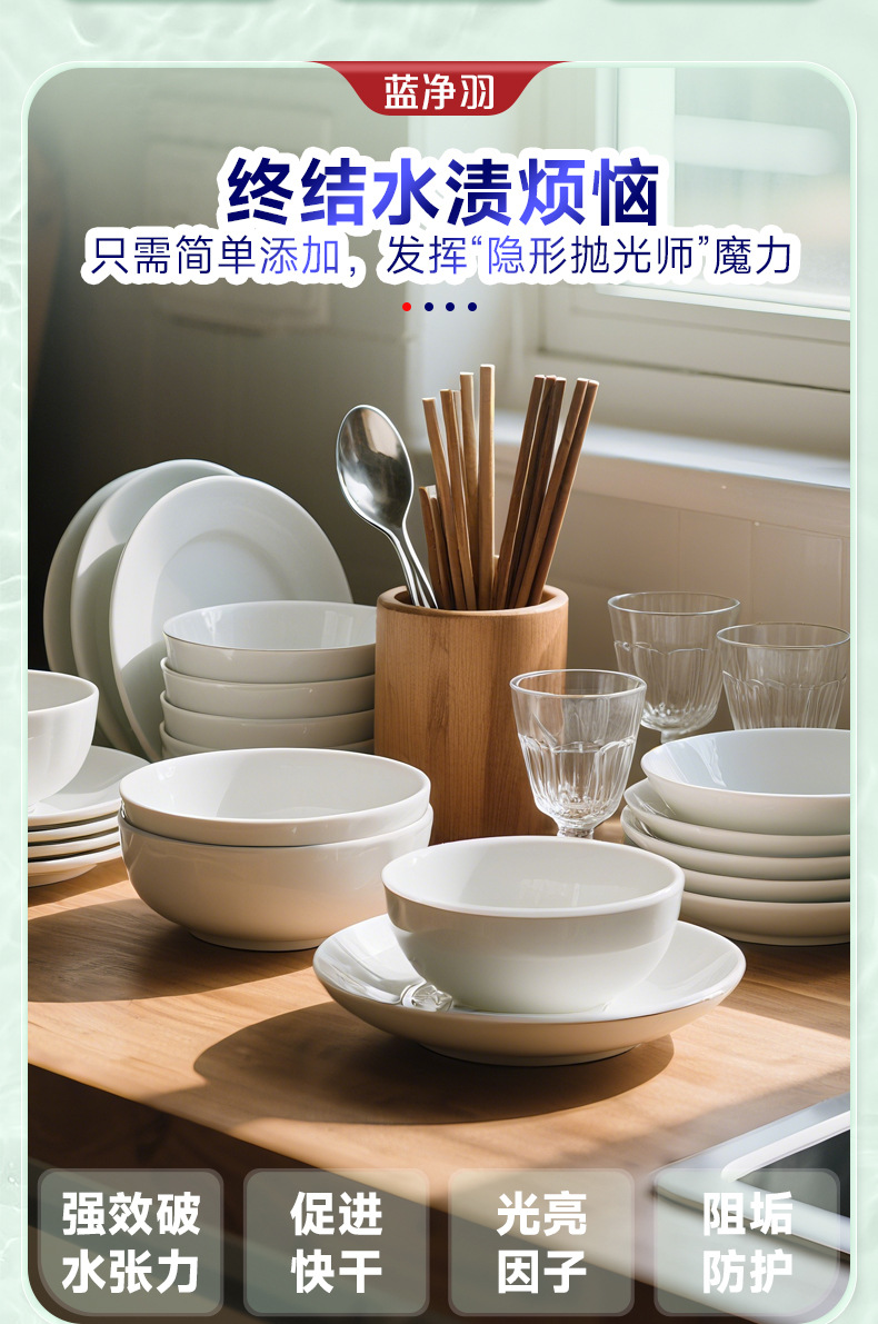 去水渍 除水斑 加速干燥 防痕迹 除菌抑菌 光亮碗碟 防积水垢