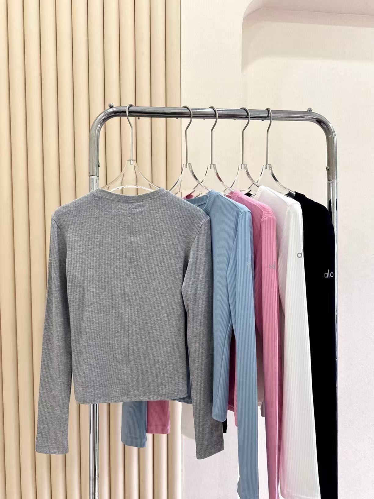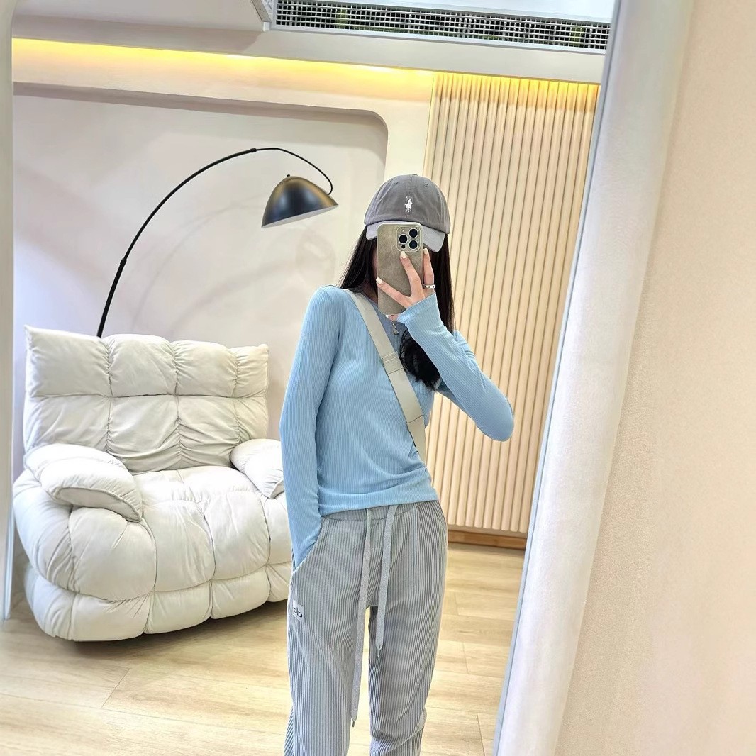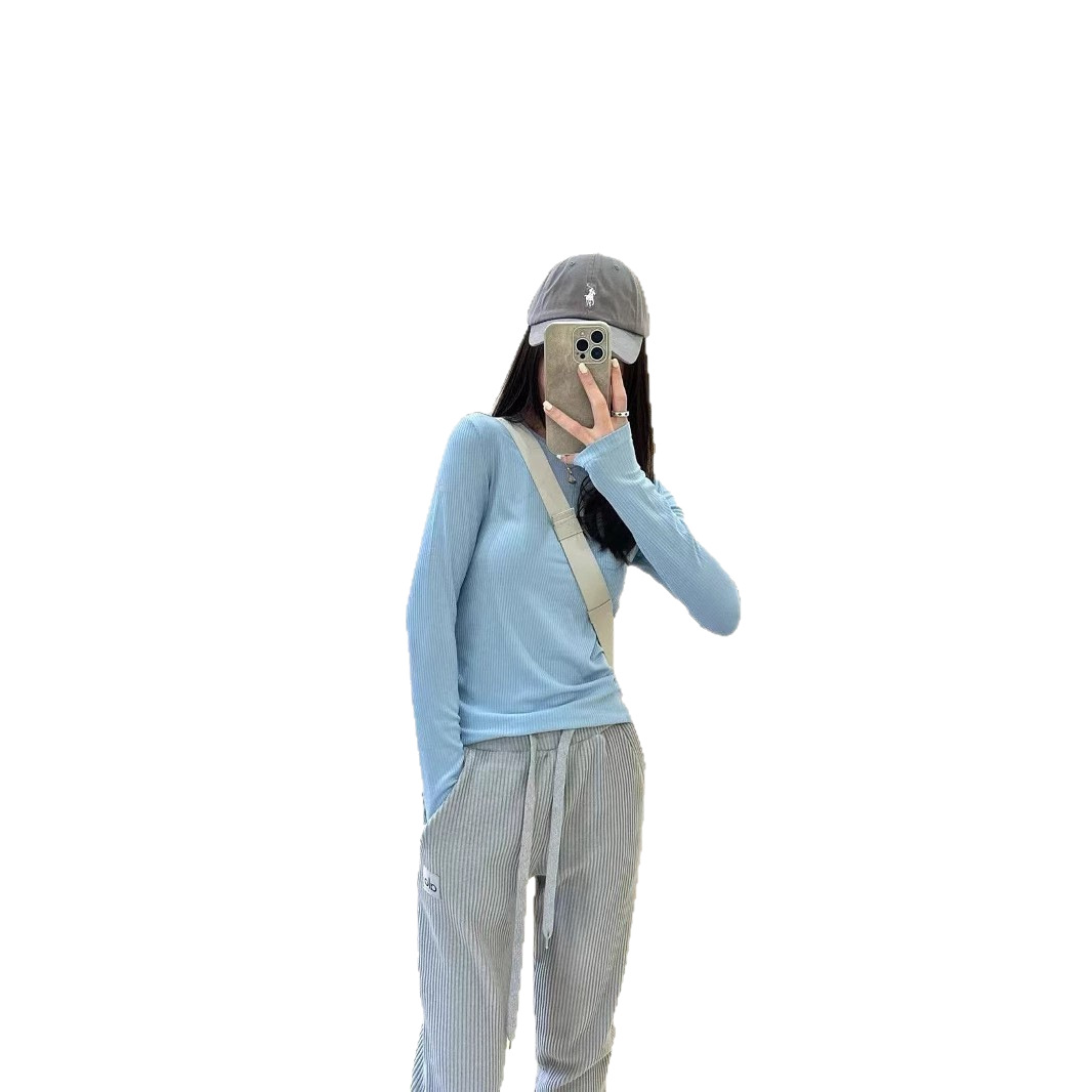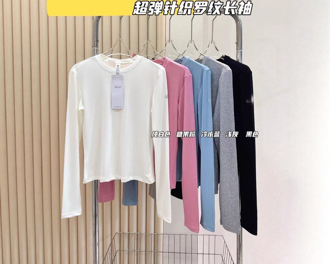 2025Al женская пятицветная нижняя рубашка, новая летняя суперэластичная футболка в рубчик с длинными рукавами, рубашка с круглым вырезом для йоги, утягивающий вид