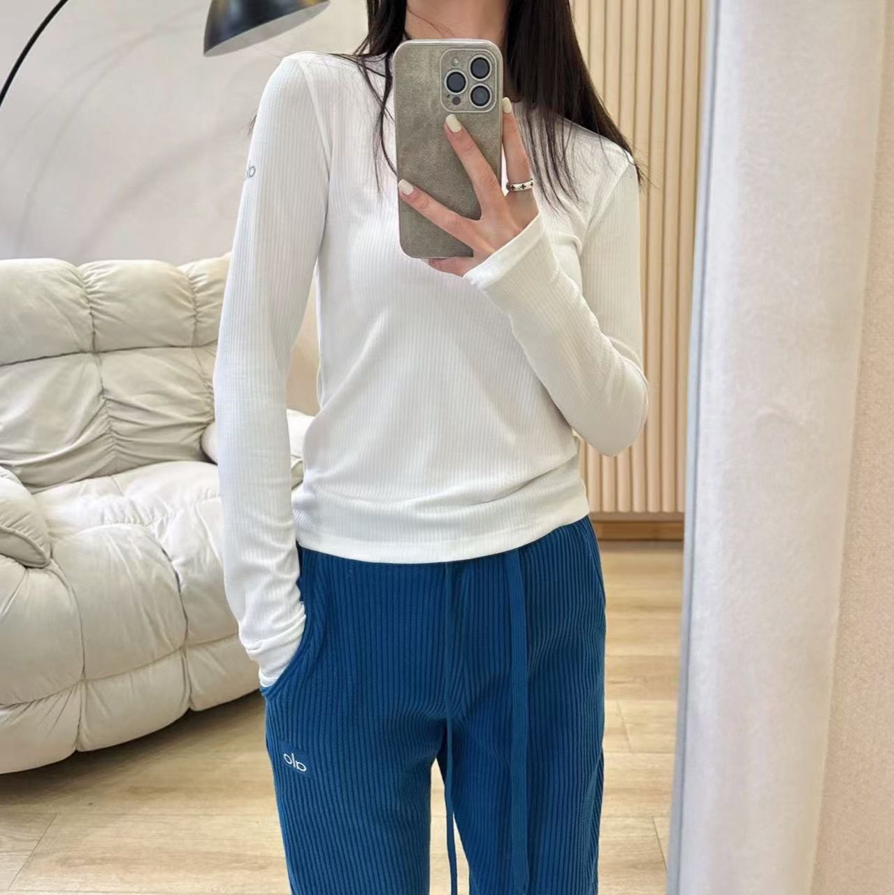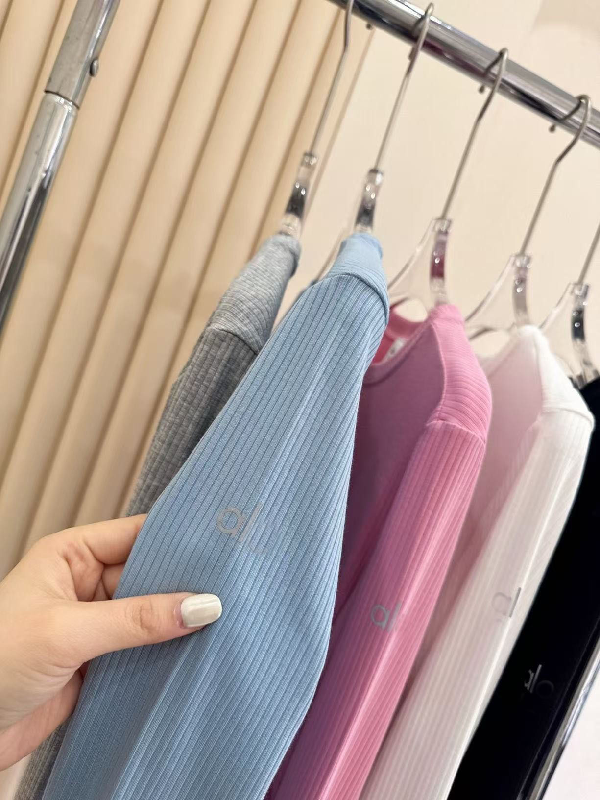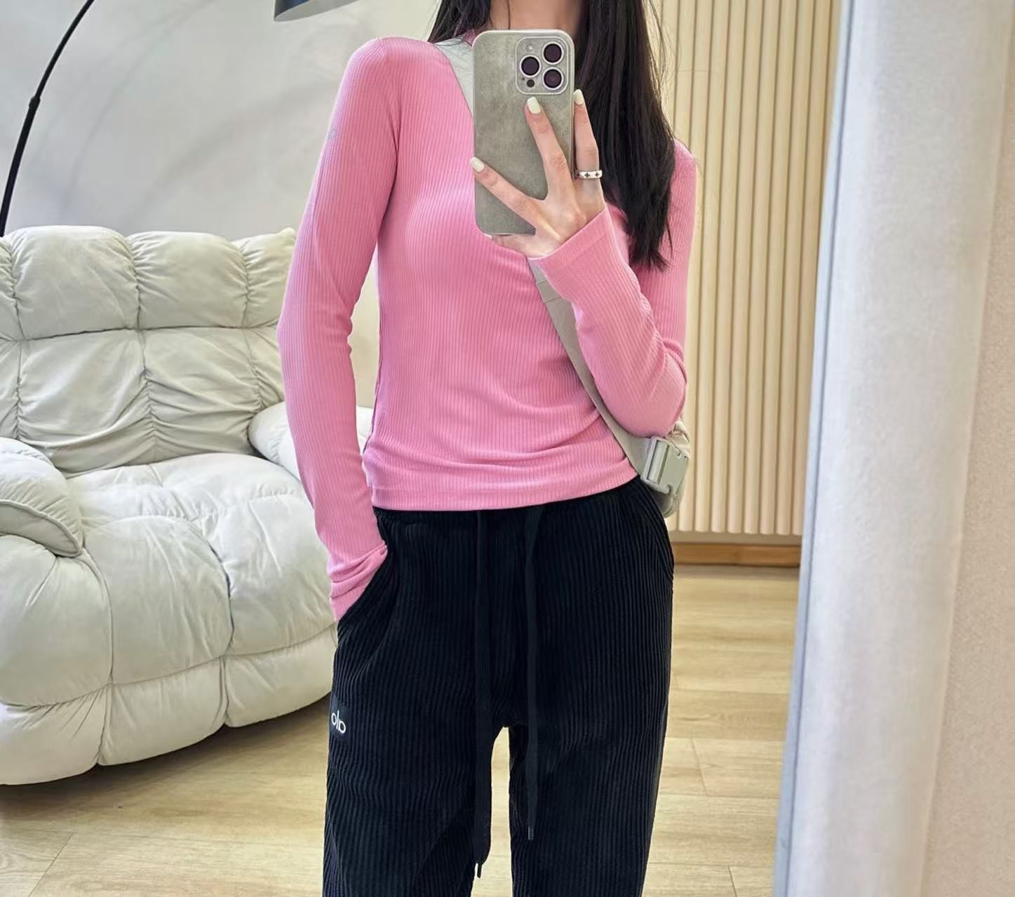 2025Al женская пятицветная нижняя рубашка, новая летняя суперэластичная футболка в рубчик с длинными рукавами, рубашка с круглым вырезом для йоги, утягивающий вид