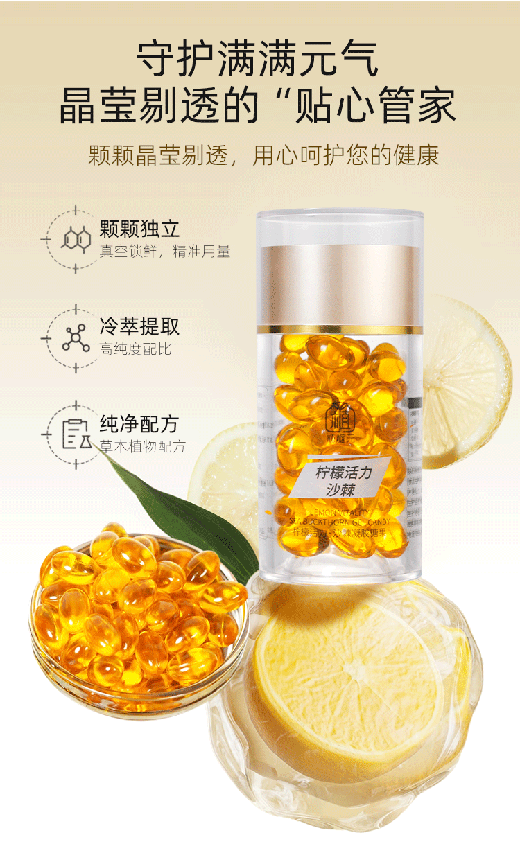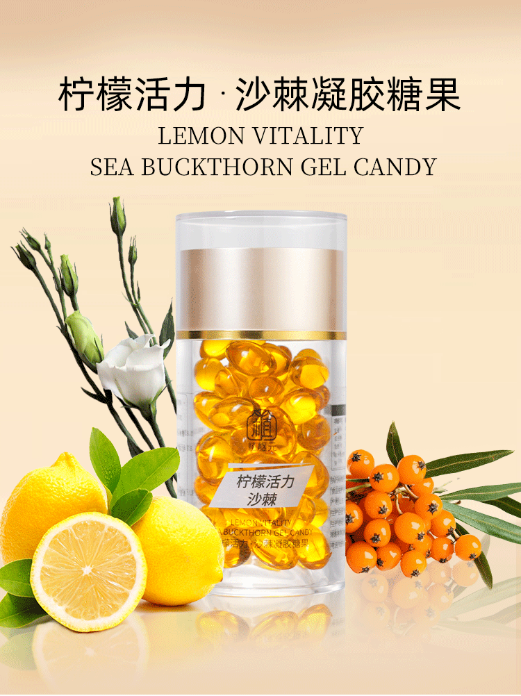 Мягкие капсулы-желе с экстрактом лимона и облепихи, аромат Xiaoni, оптом со склада от производителя, под заказ