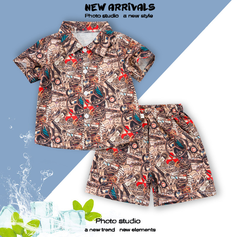 2025 новая детская рубашка модный бренд короткий рукав костюм мужская и женская версия летний легкий люкс