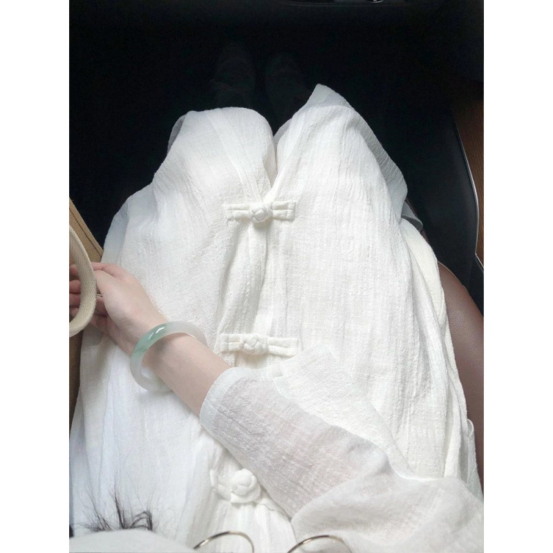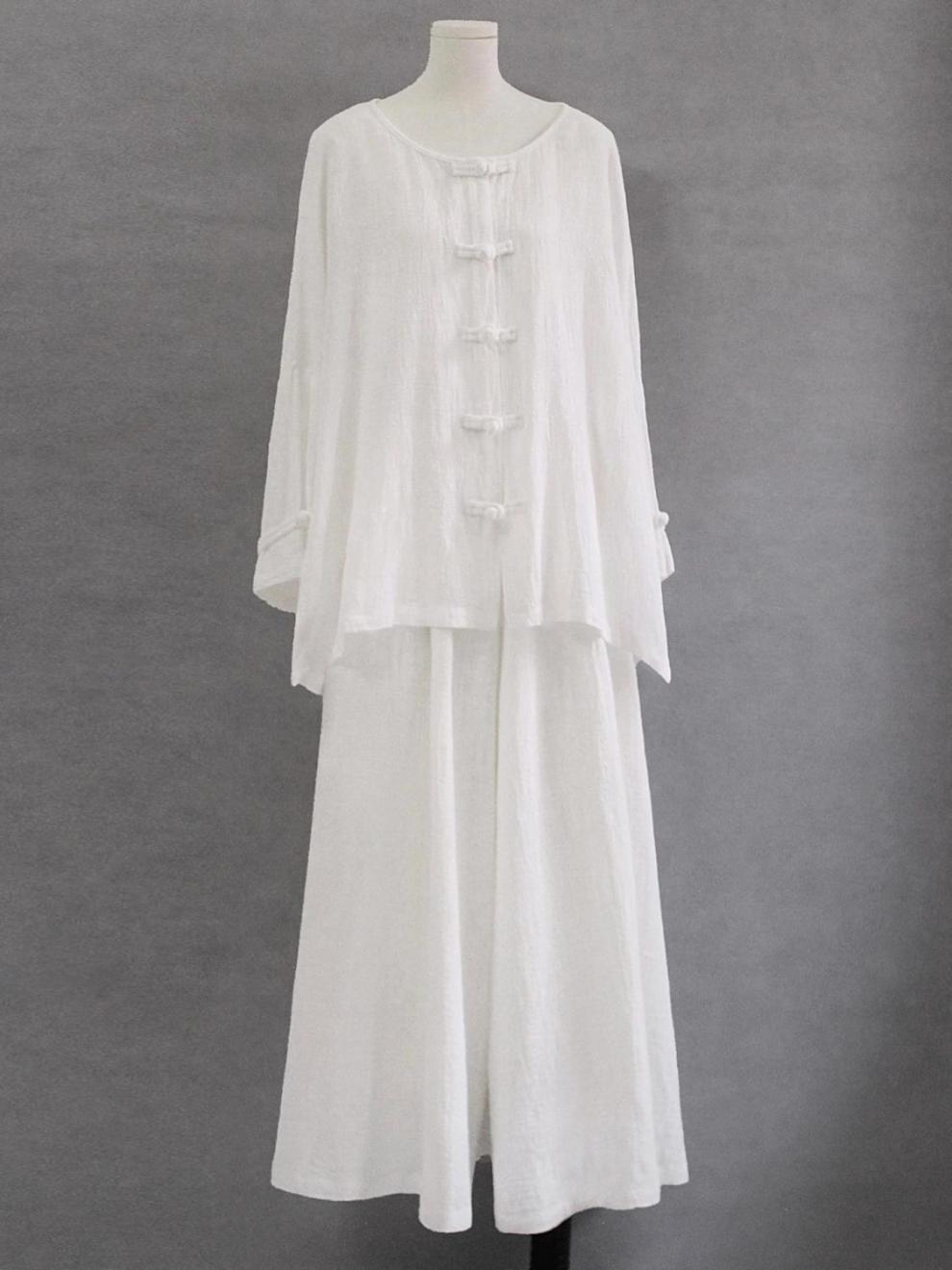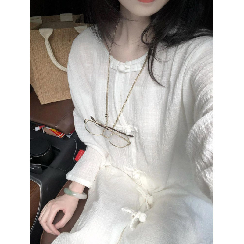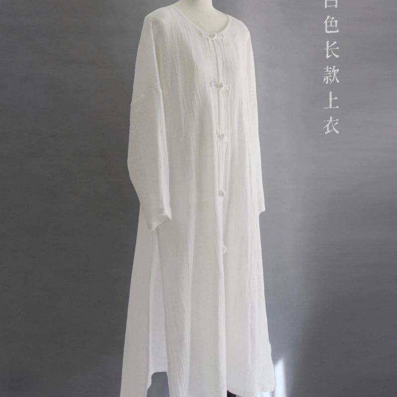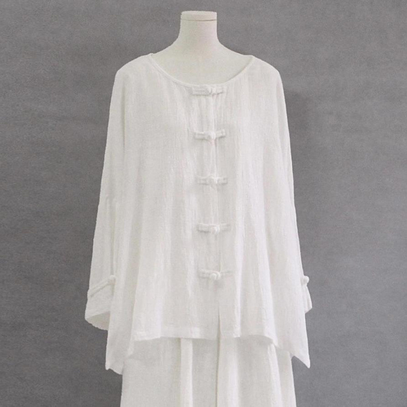 Новый наряд в китайском стиле: женская белая рубашка на пуговицах из хлопка и льна в национальном стиле с широкими брюками, подходящая для повседневной носки, этнический китайский костюм.