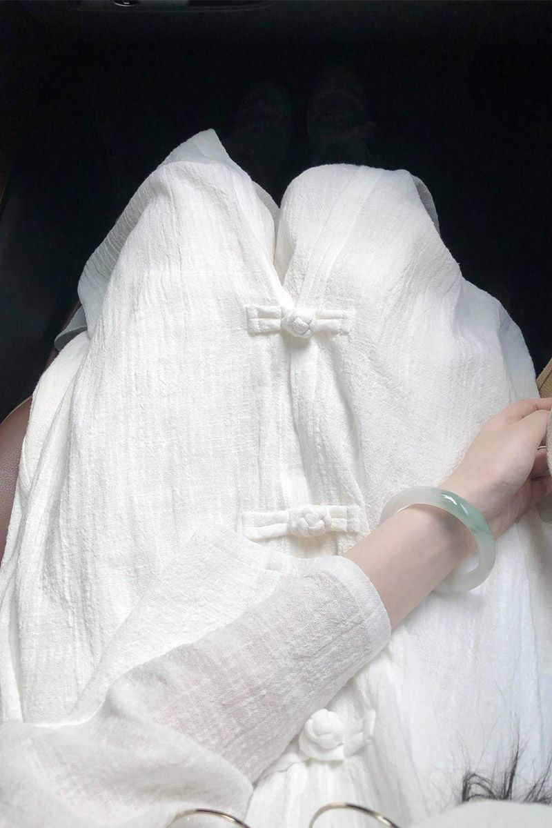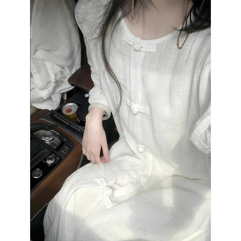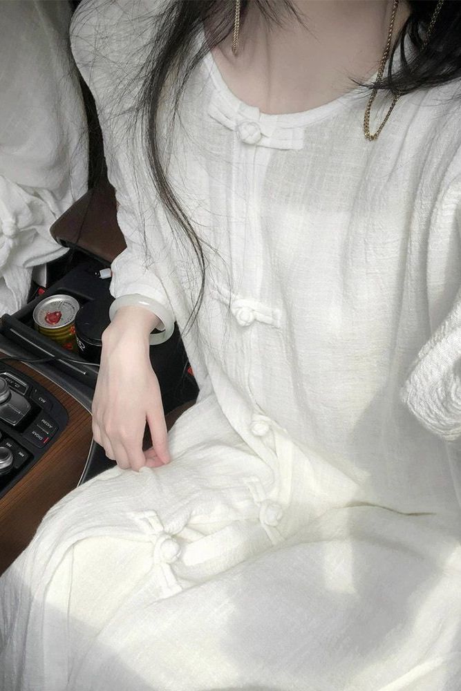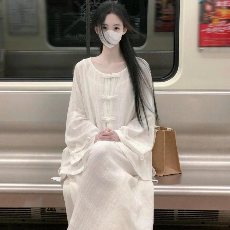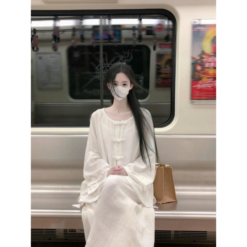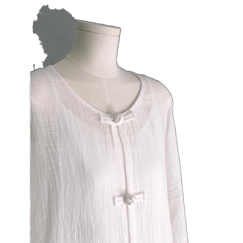 Новый наряд в китайском стиле: женская белая рубашка на пуговицах из хлопка и льна в национальном стиле с широкими брюками, подходящая для повседневной носки, этнический китайский костюм.