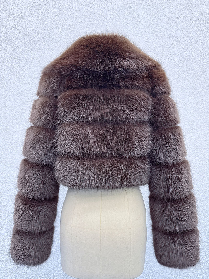 0115X Новая европейская и американская куртка из искусственного меха, экологически чистая имитация лисьего меха, короткий большой меховой воротник, женский модный топ
