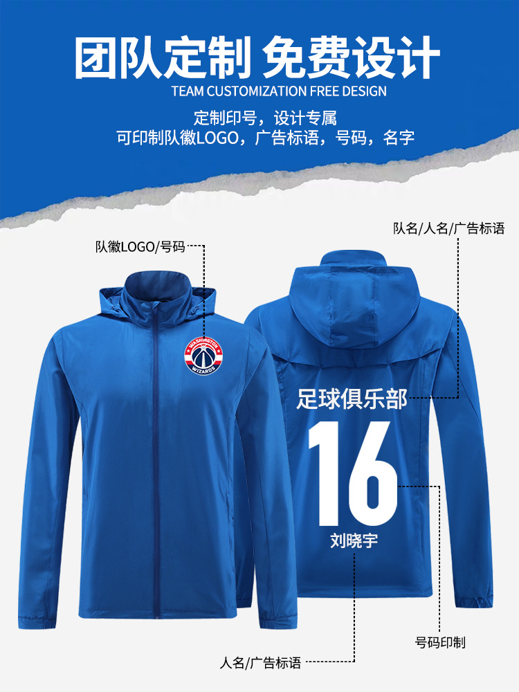 Футбольная тренировочная куртка для активного отдыха на открытом воздухе, ветро- и водоотталкивающая, с возможностью нанесения логотипа и клубного рисунка.