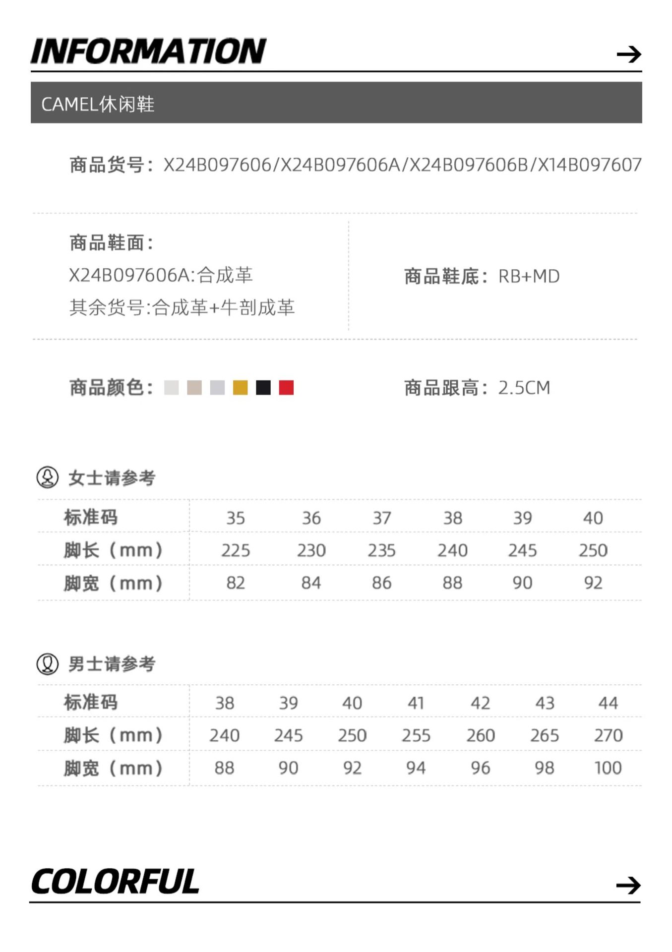 X24B097606, желто-черный, женская модель; X14B097607, желтый/черный, мужской стиль; X24B097606, цвета слоновой кости/черный, женская модель; X14B097607, слоновая кость/черный, мужской стиль; X24B097606B, красный/белый цвета слоновой кости, женская модель; X14B097607B, красный/слоновая кость, мужской стиль; X14B097607, черный, мужской стиль; X24B097606B, румяна/цвет слоновой кости, женская модель; X24B097606B, вишнево-розовый/песочно-серый, женская модель; X24B097606B, Манчестер Сити Синий/Мутный синий, Женская модель; X24B097606A, серебристый/белый цвета слоновой кости, женская модель; X24B097606B, каштаново-коричневый/белый, женская модель; X24B097606R, цвет слоновой кости/черный, женская модель (плюс бархат); X24B097606R, желто-черный, женская модель (плюс бархат)