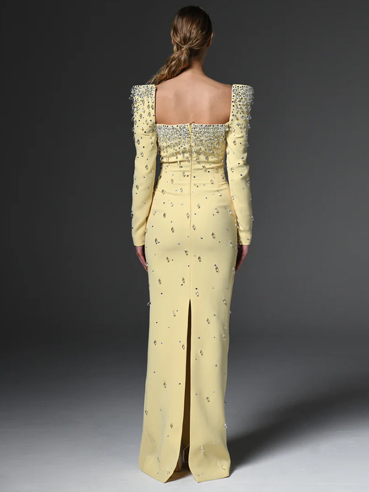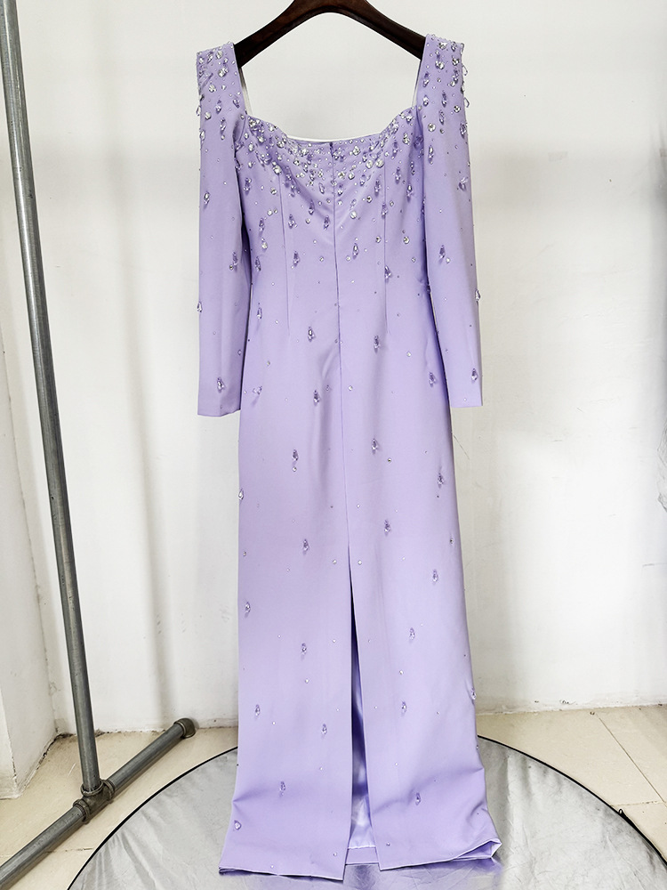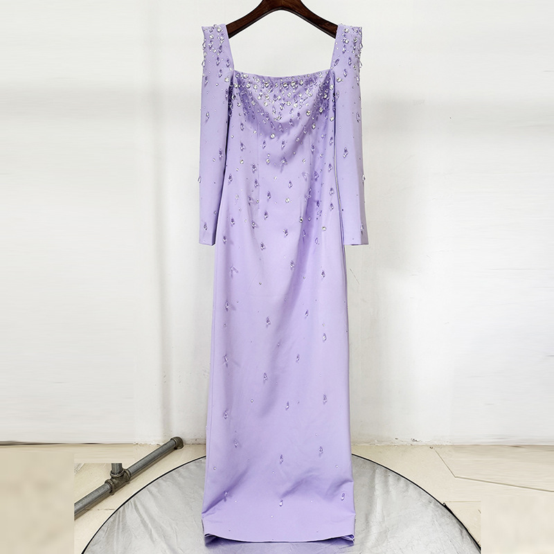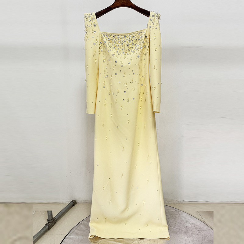 В наличии европейское и американское платье в стиле знаменитостей, длинное, 2025 года, новое, с квадратным вырезом, тяжелое, с бисером и стразами.