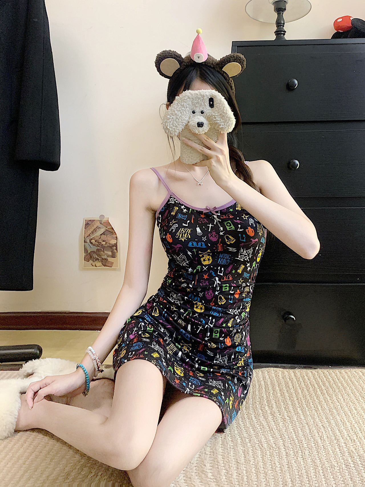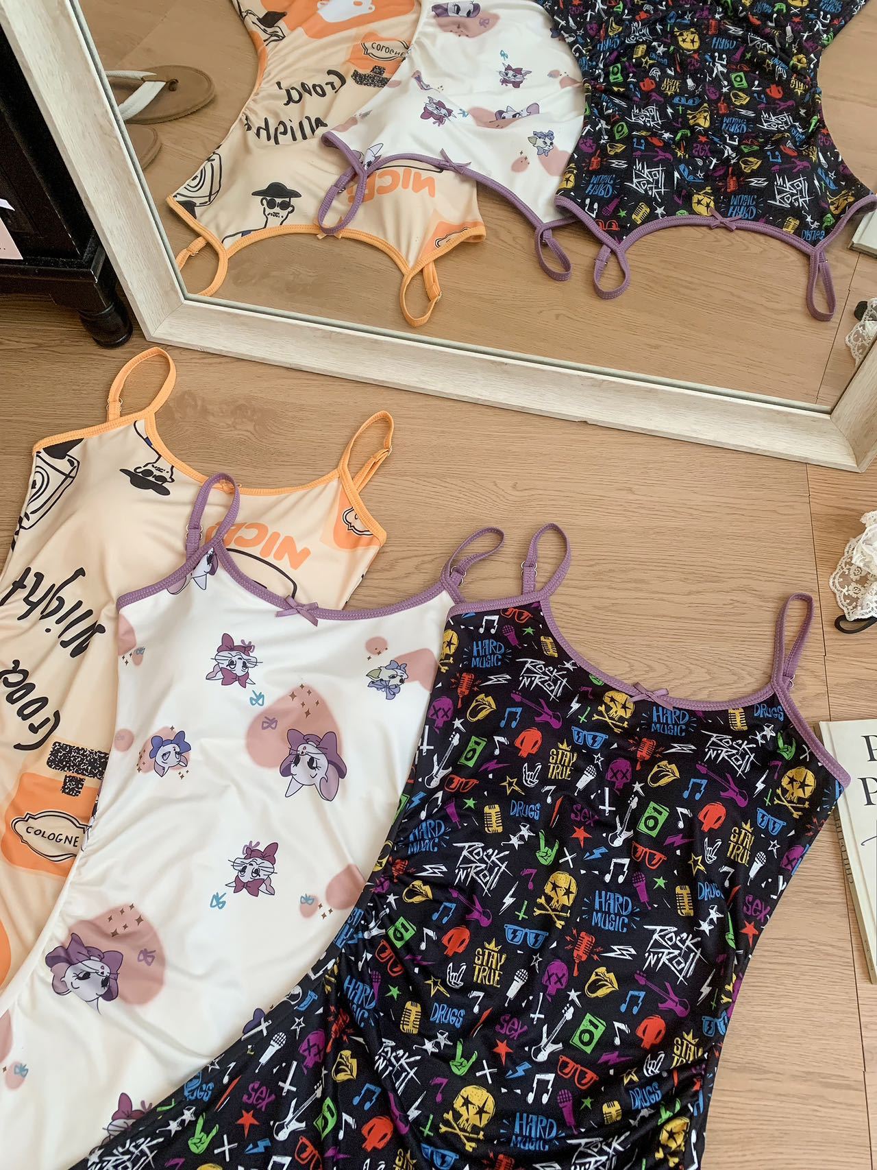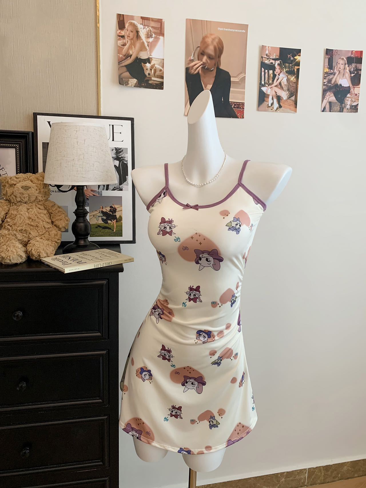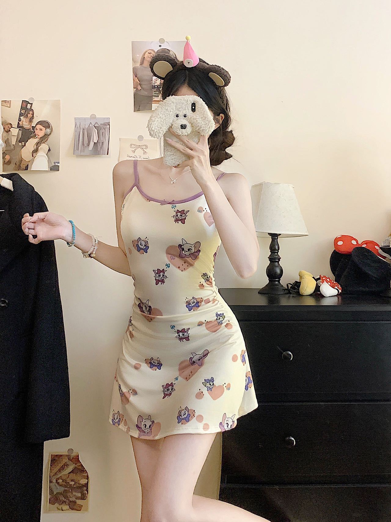 1930 # Пижама с принтом на подтяжках и подушечками для груди для женщин, летняя облегающая пижама без рукавов, чистая страсть, горячая девушка, сексуальная юбка на бедрах, домашняя одежда