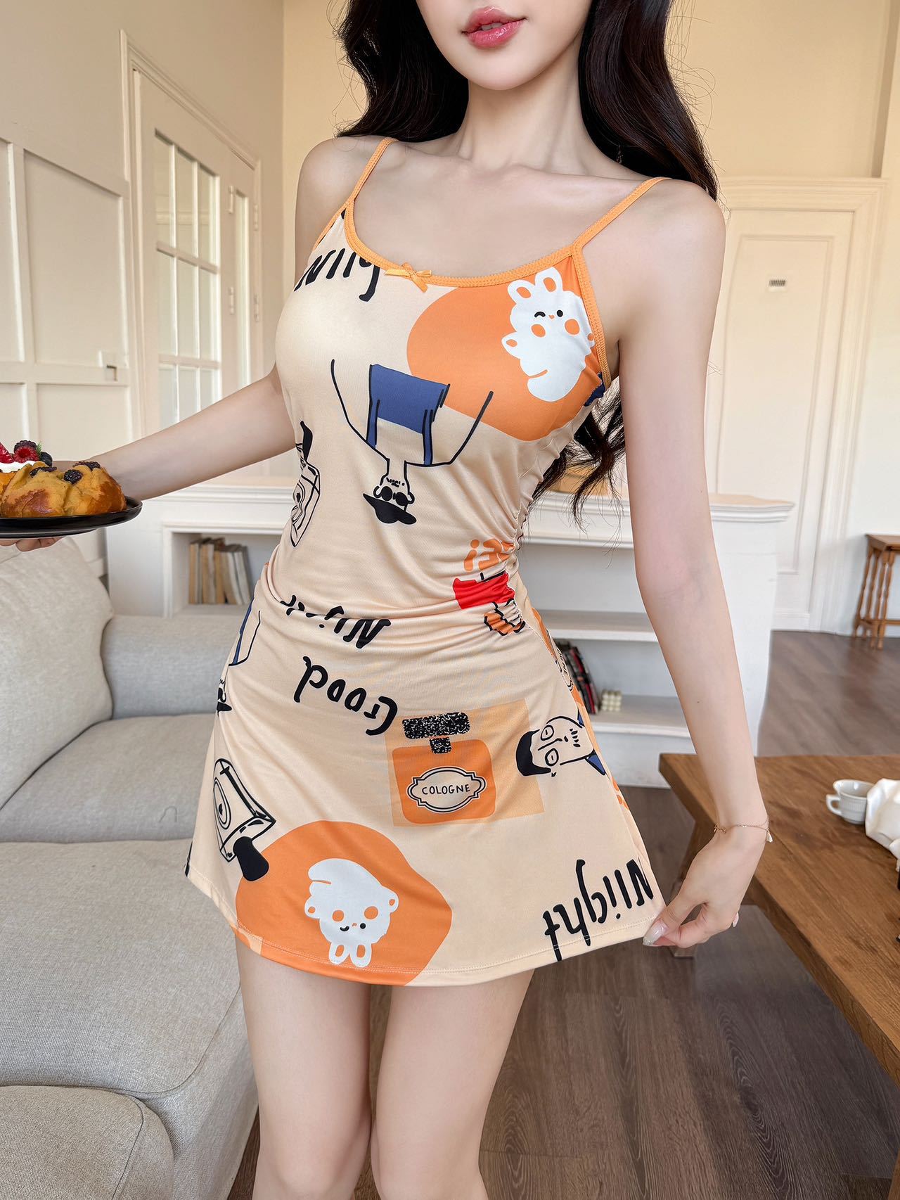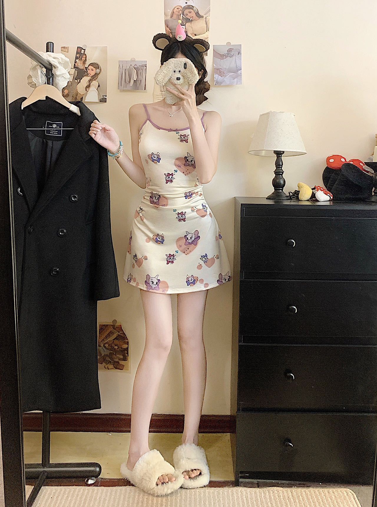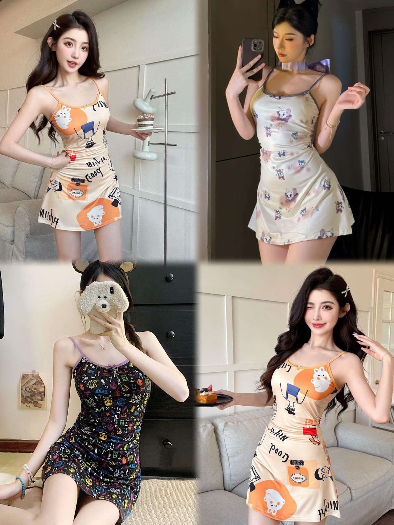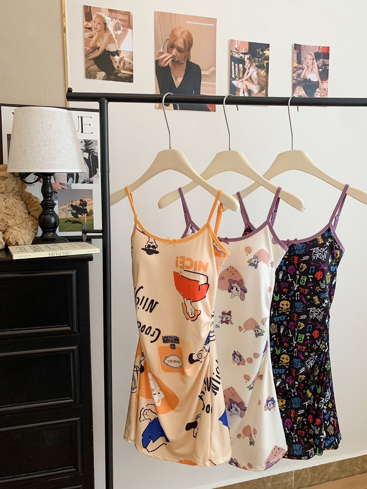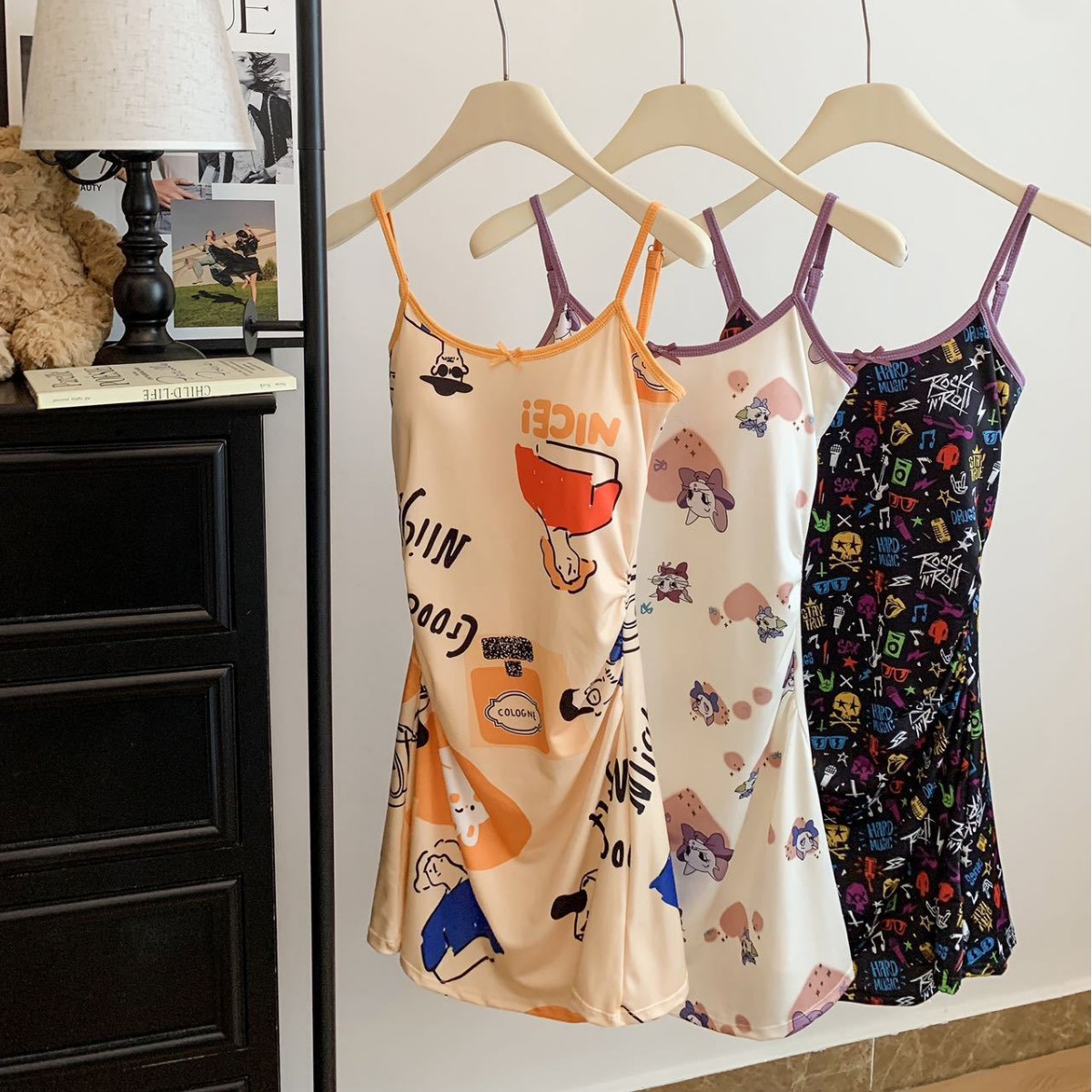 1930 # Пижама с принтом на подтяжках и подушечками для груди для женщин, летняя облегающая пижама без рукавов, чистая страсть, горячая девушка, сексуальная юбка на бедрах, домашняя одежда