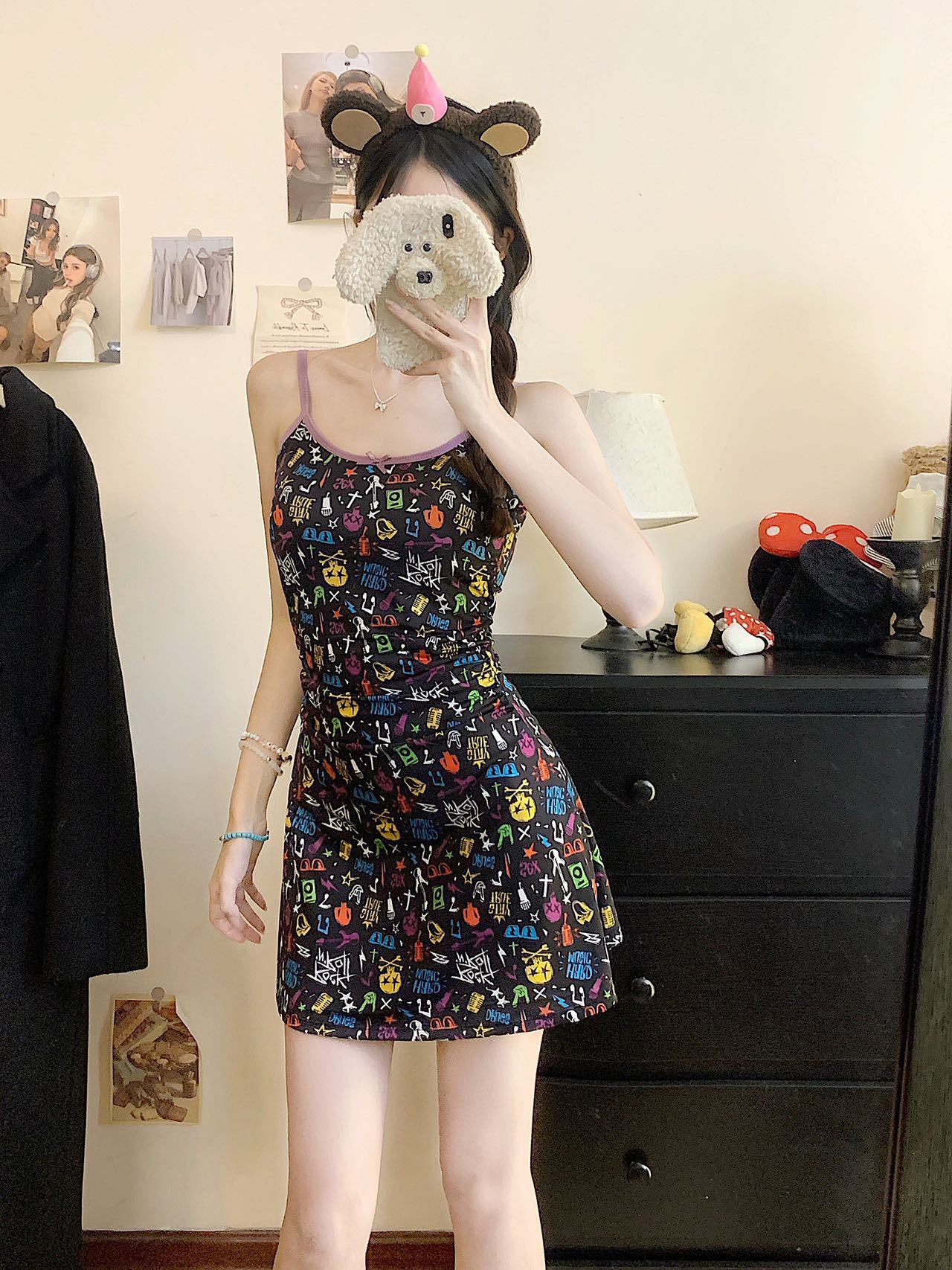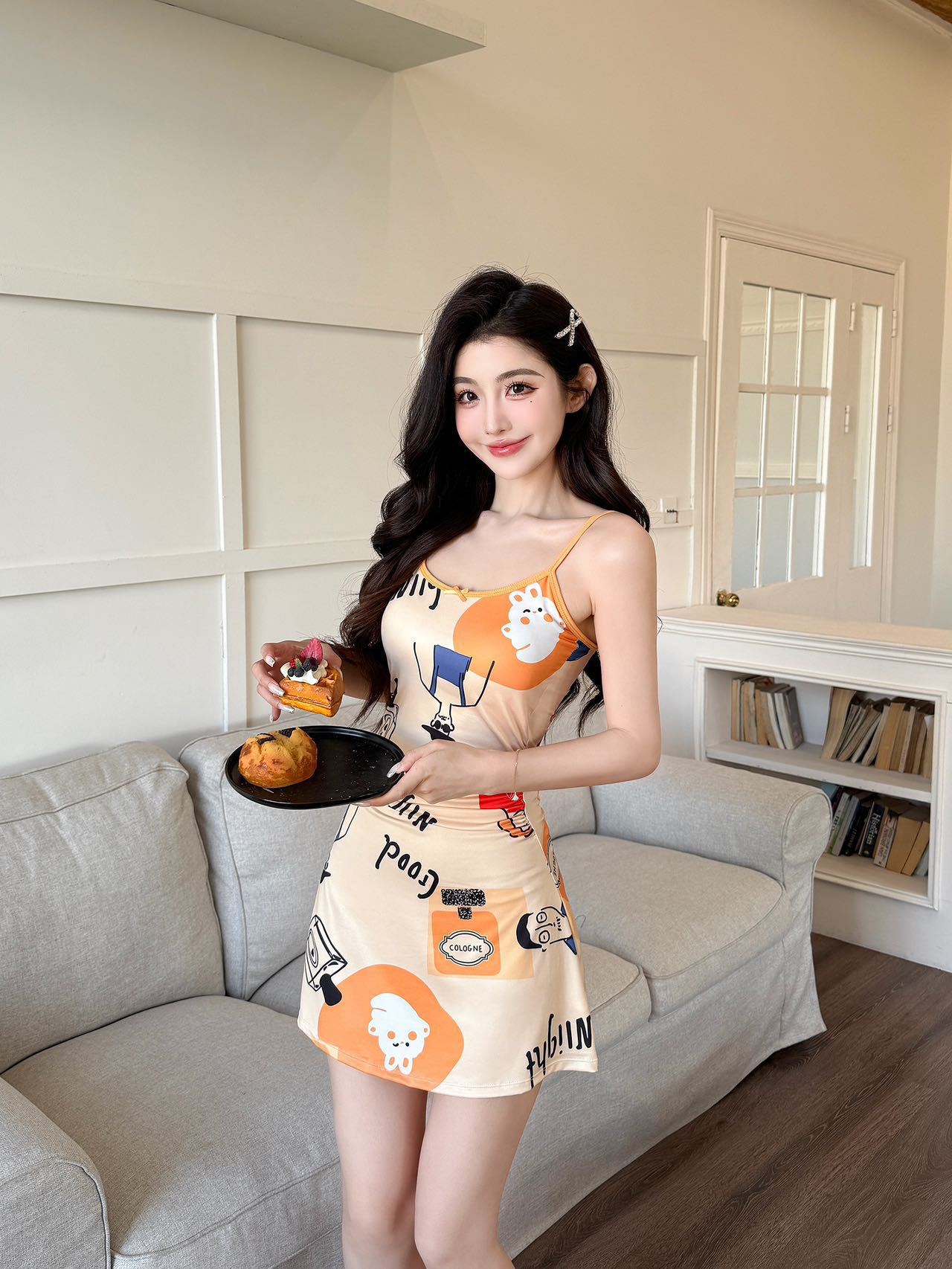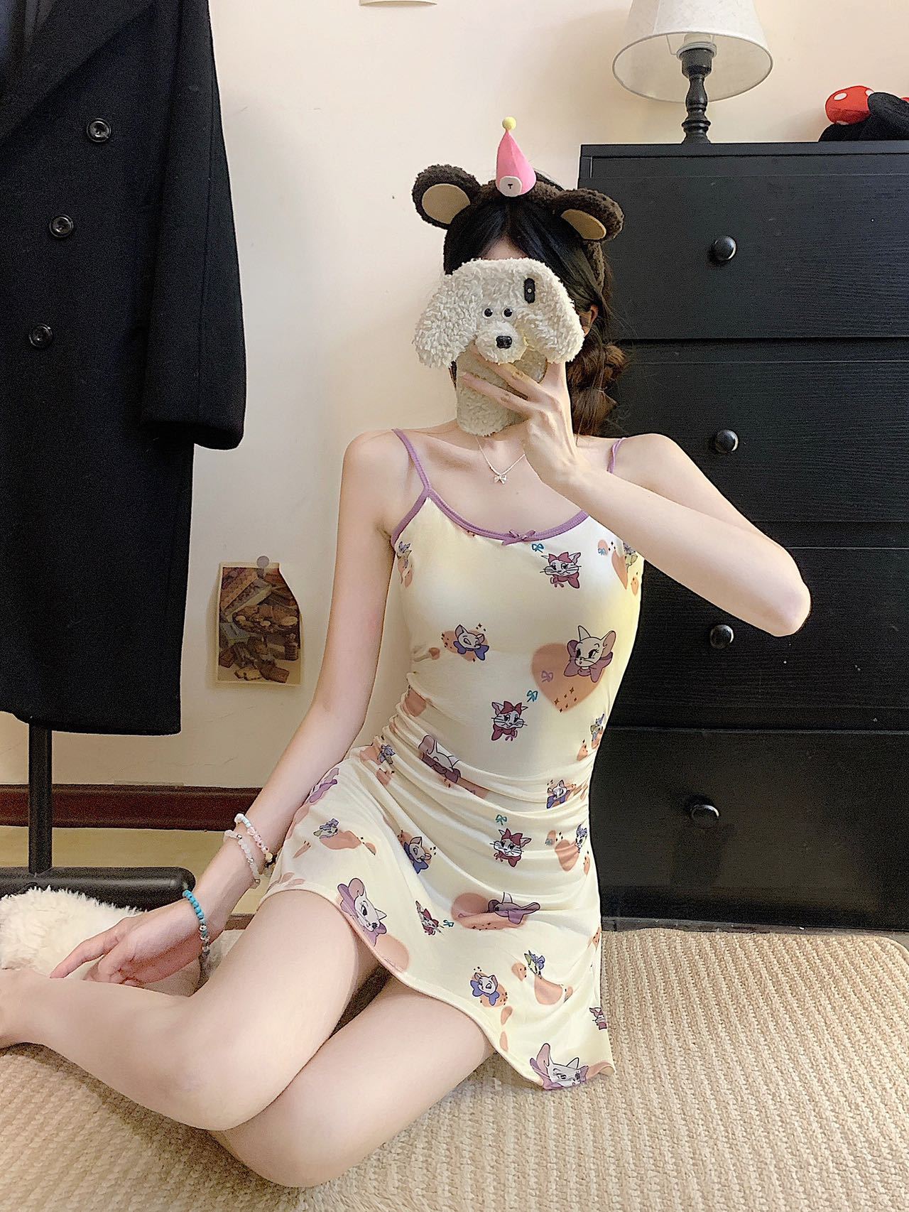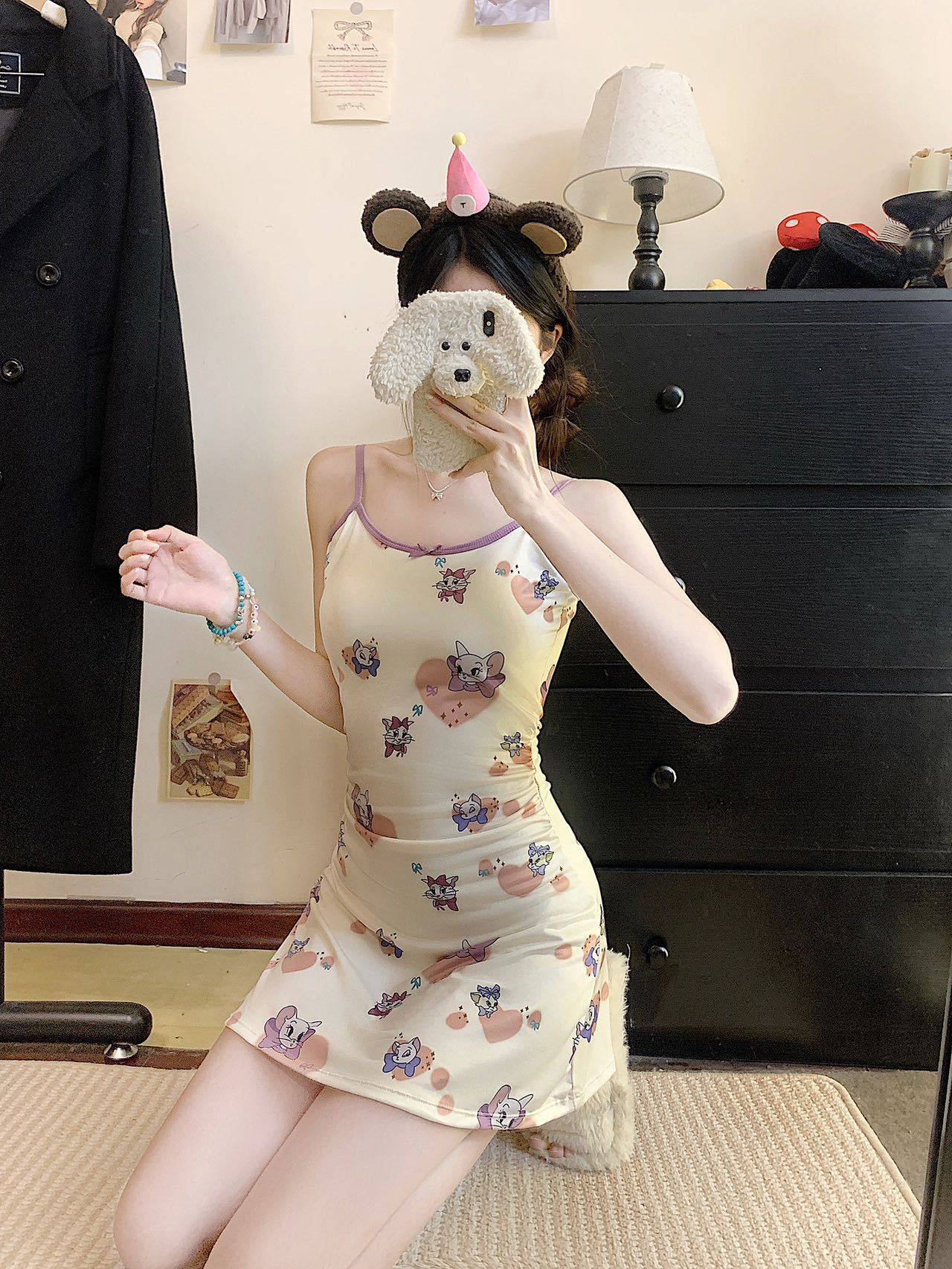 1930 # Пижама с принтом на подтяжках и подушечками для груди для женщин, летняя облегающая пижама без рукавов, чистая страсть, горячая девушка, сексуальная юбка на бедрах, домашняя одежда