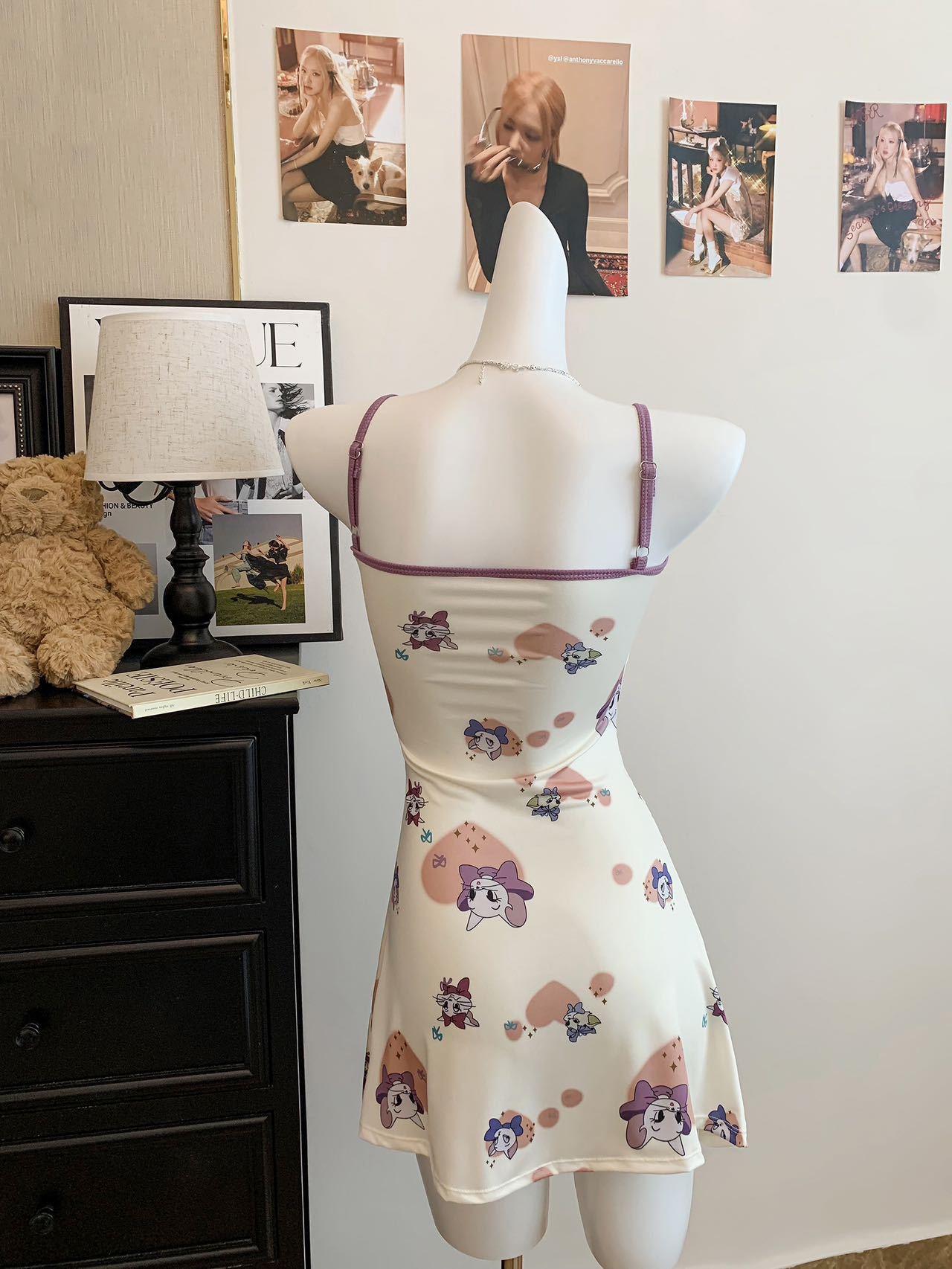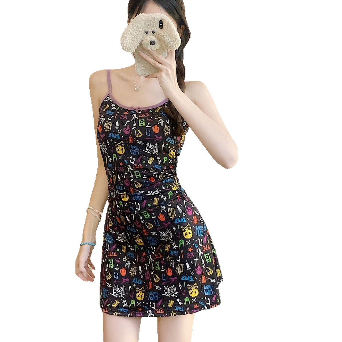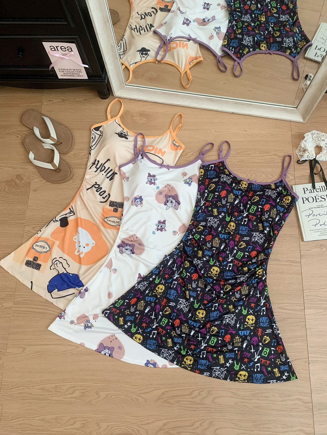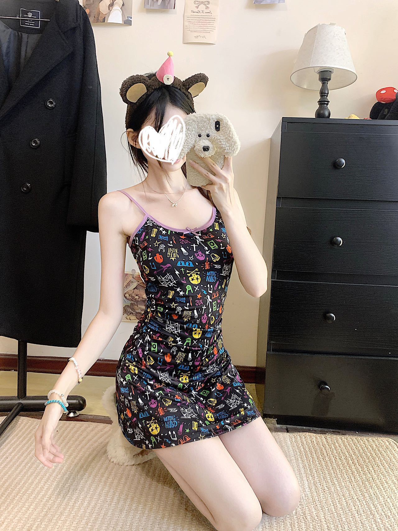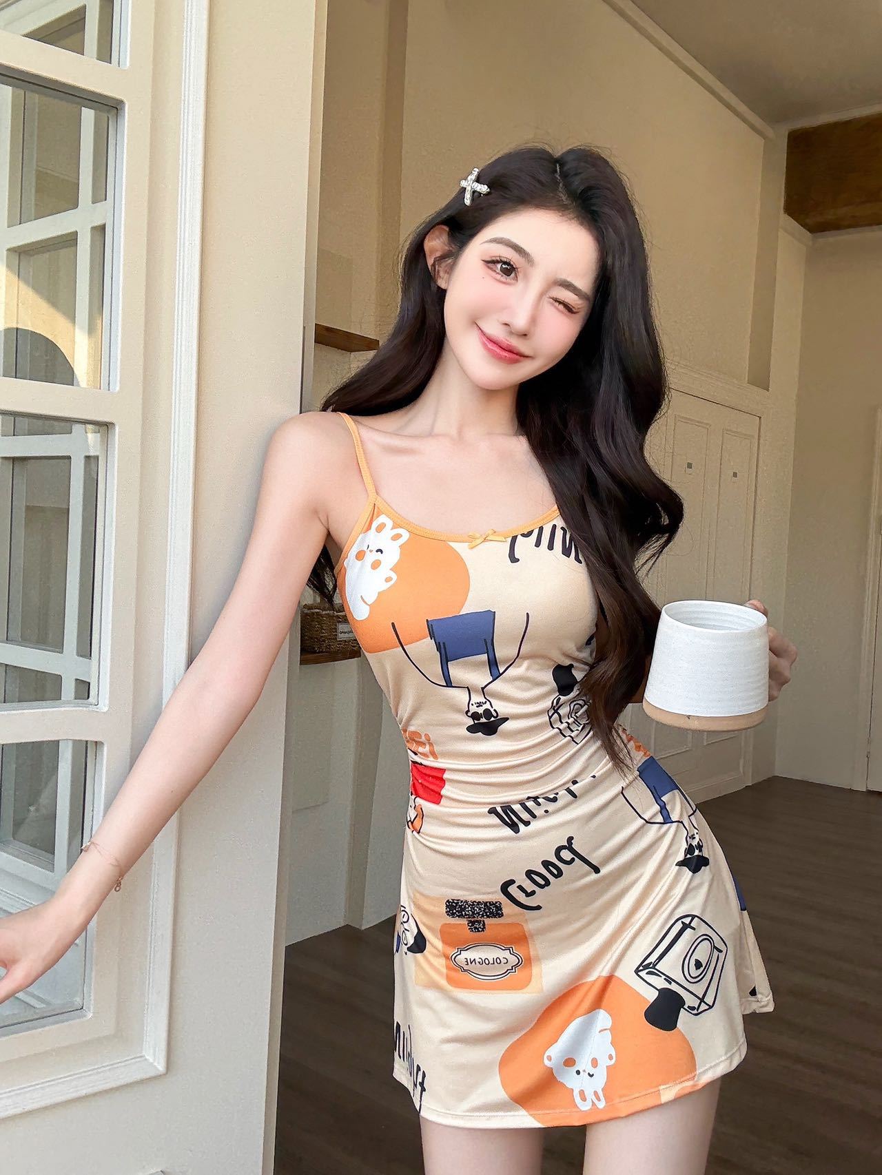1930 # Пижама с принтом на подтяжках и подушечками для груди для женщин, летняя облегающая пижама без рукавов, чистая страсть, горячая девушка, сексуальная юбка на бедрах, домашняя одежда