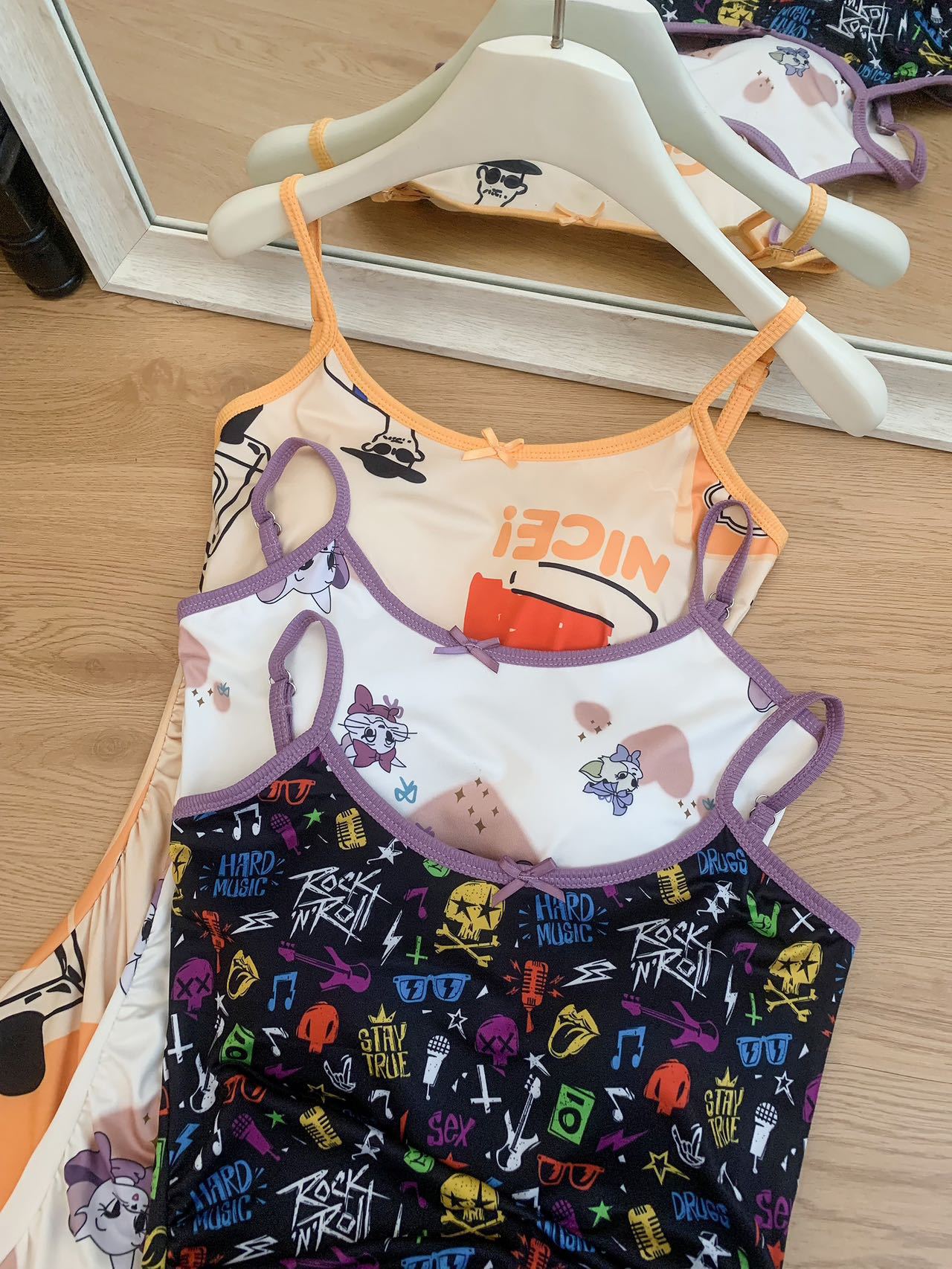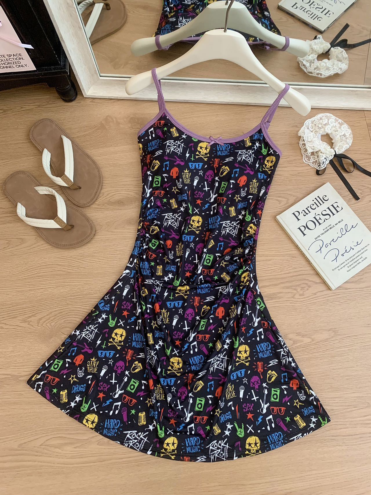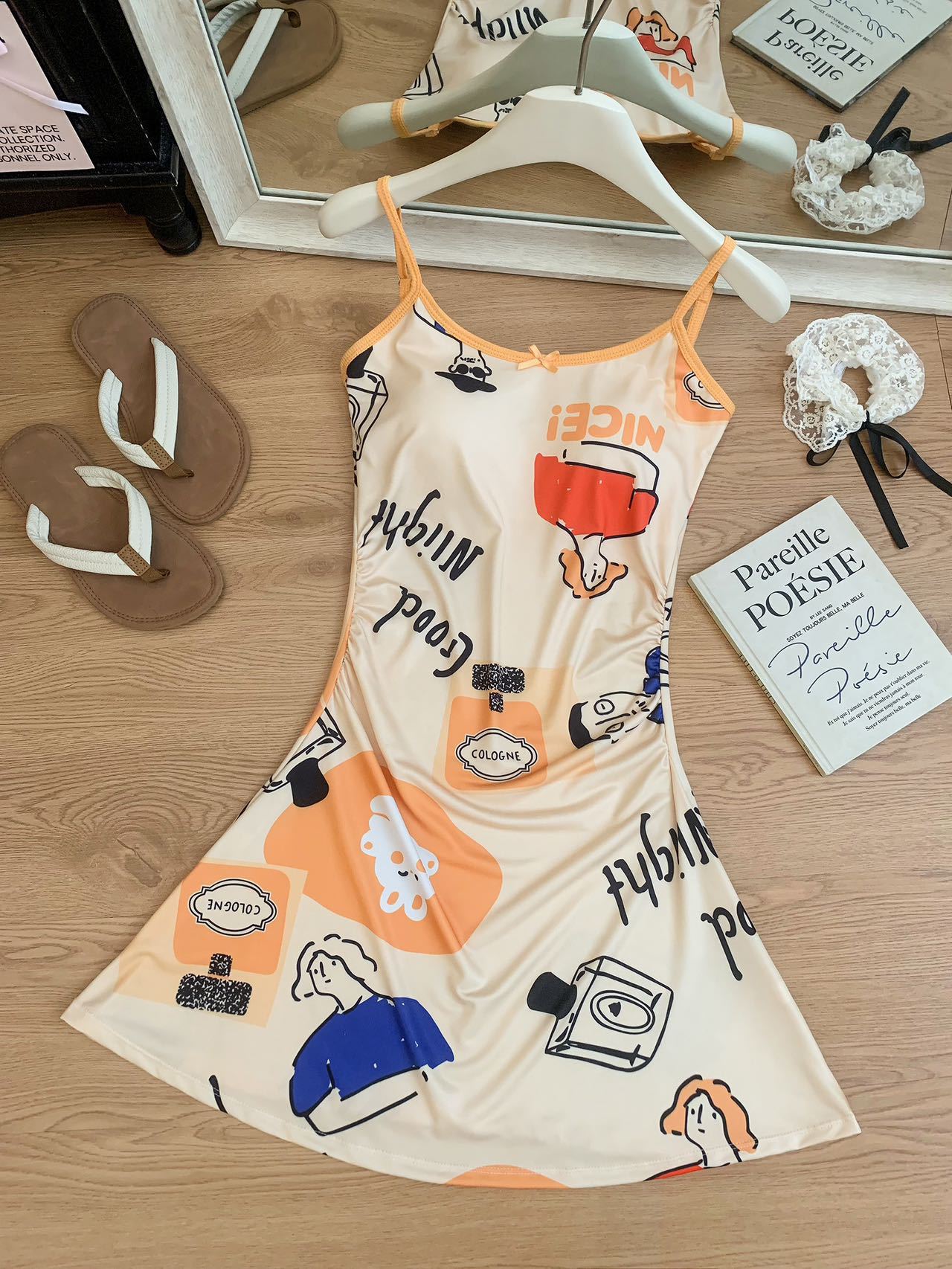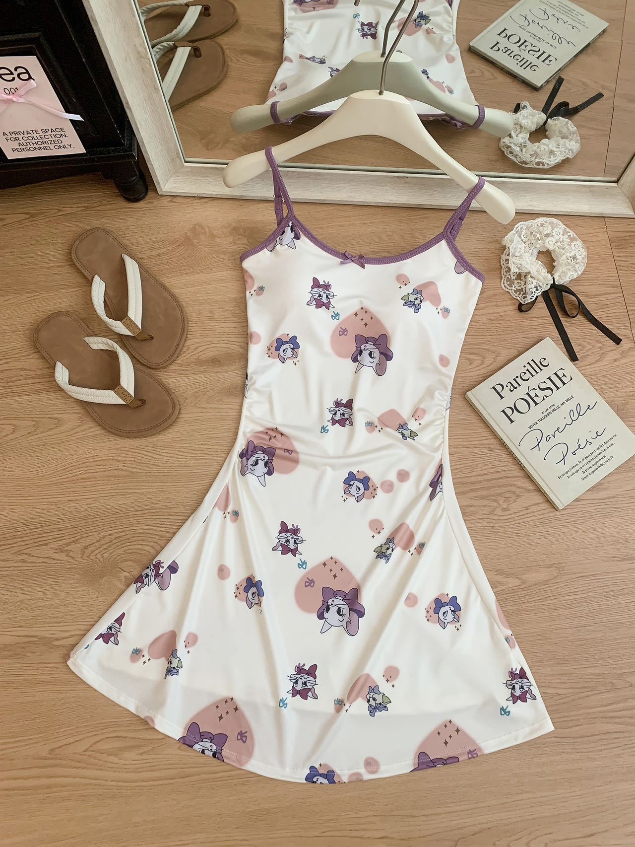 1930 # Пижама с принтом на подтяжках и подушечками для груди для женщин, летняя облегающая пижама без рукавов, чистая страсть, горячая девушка, сексуальная юбка на бедрах, домашняя одежда