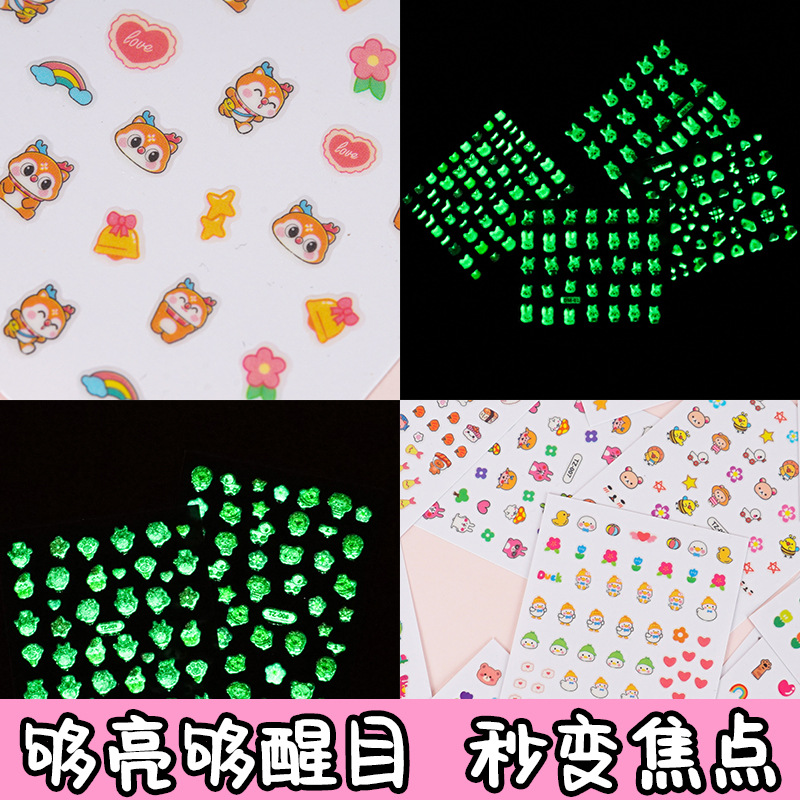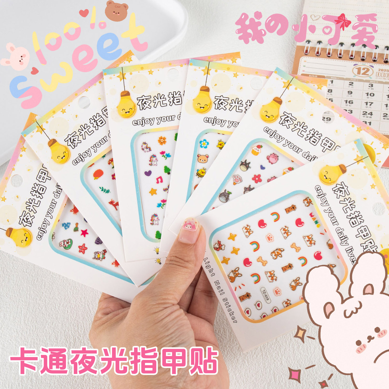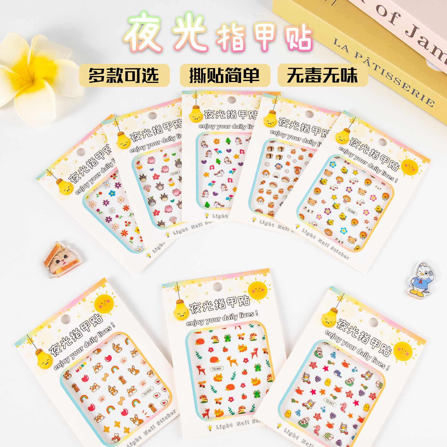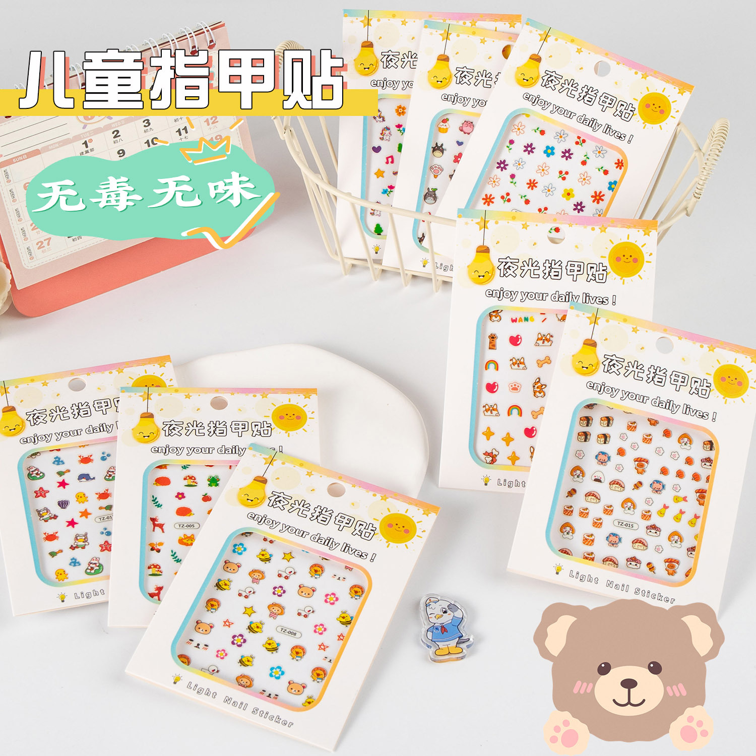 20 милых мультяшных светящихся наклеек для ногтей, набор детских патчей для дизайна ногтей, экологически чистые водонепроницаемые наклейки для дизайна ногтей для маленьких девочек