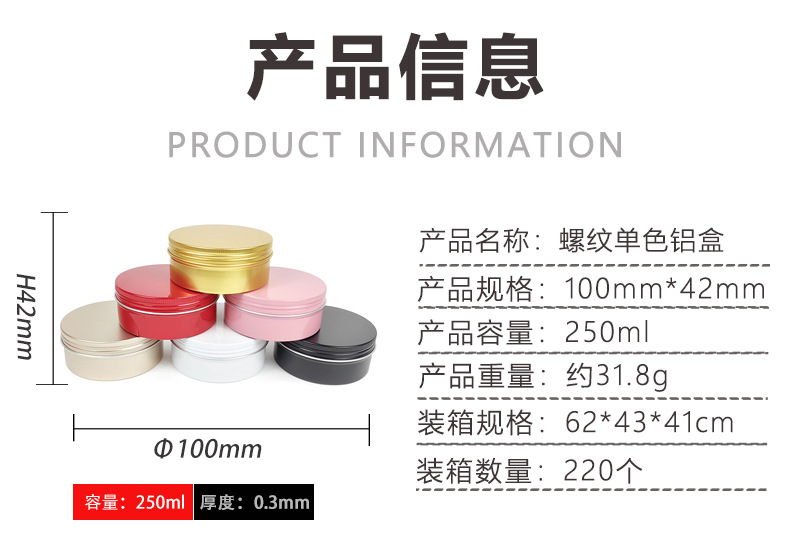 250 г/мл алюминиевая коробка 100*42 мм с резьбой, монохромная круглая паста, воск, чай, пищевая герметичная металлическая упаковка