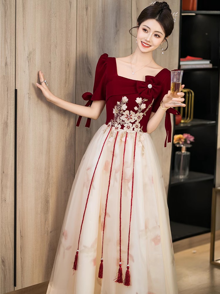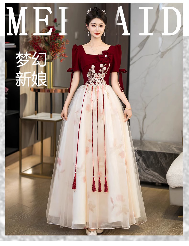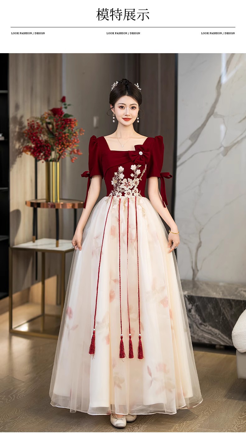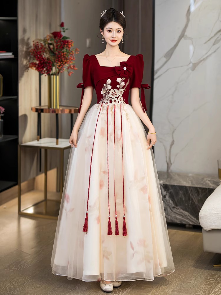 Платье для невесты плюс сайз 2025 весна-лето новое свадебное платье для вечеринки благодарности красное бархатное с длинным рукавом для женщин
