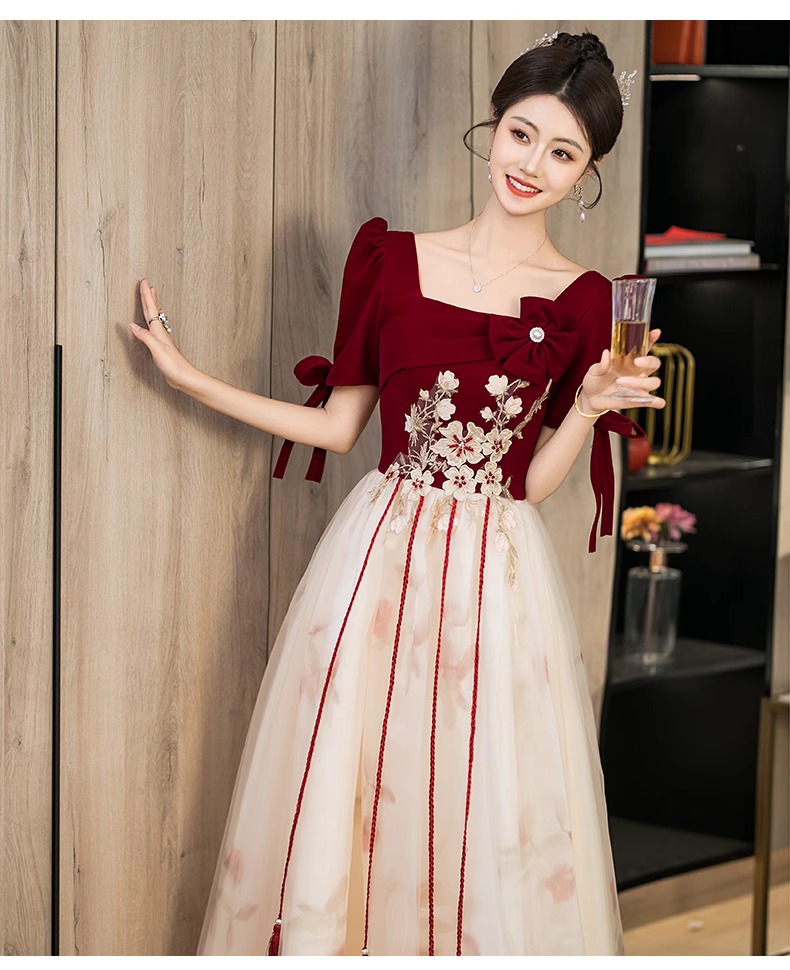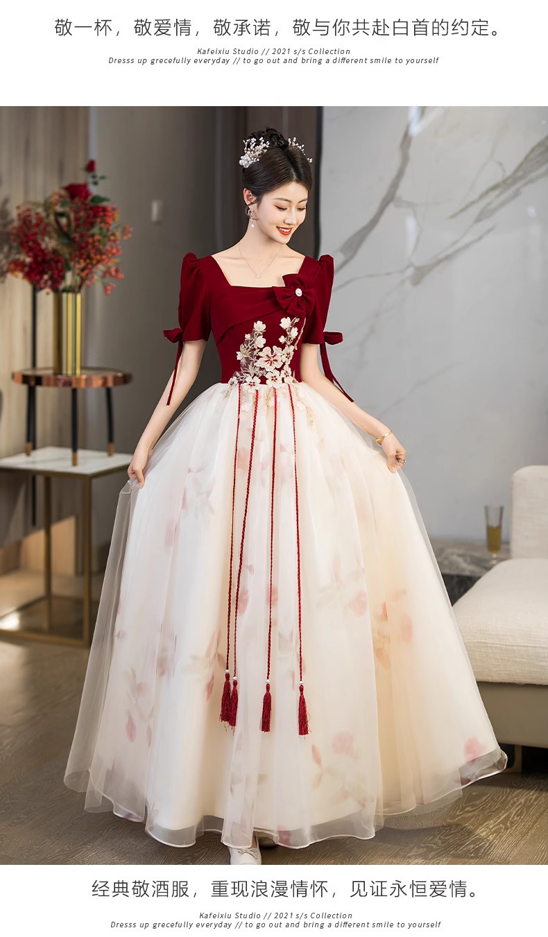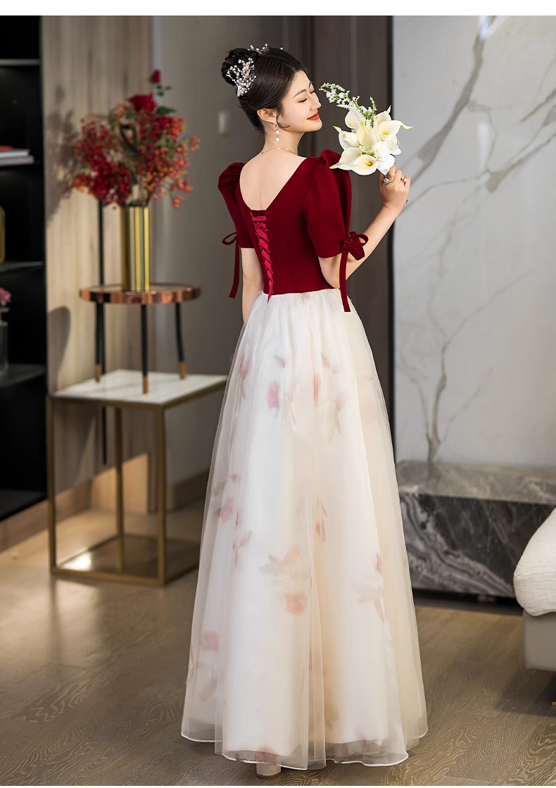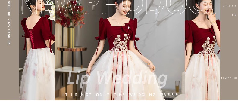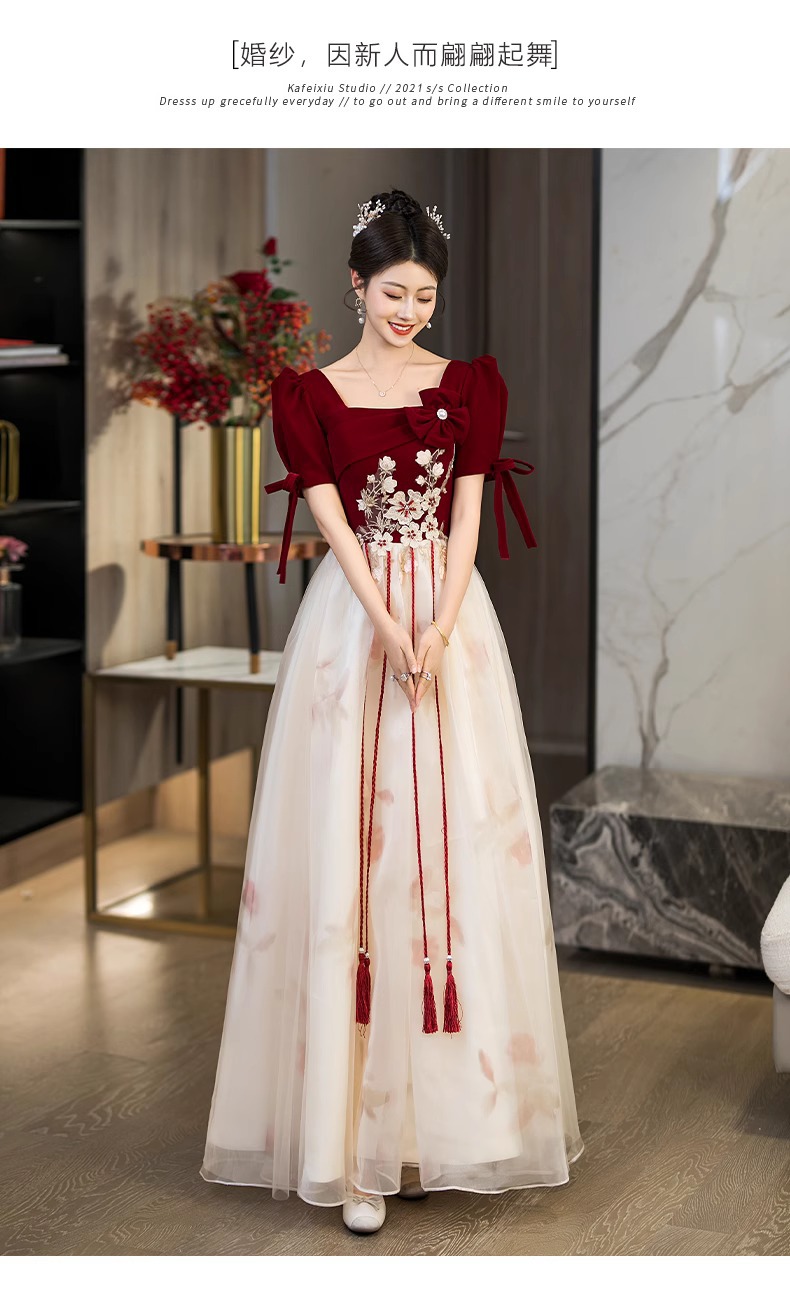 Платье для невесты плюс сайз 2025 весна-лето новое свадебное платье для вечеринки благодарности красное бархатное с длинным рукавом для женщин