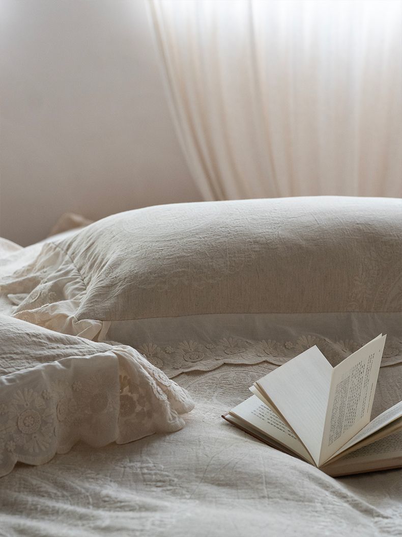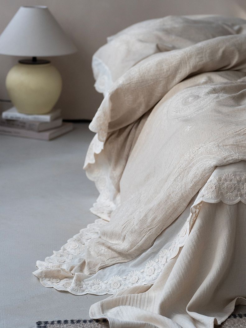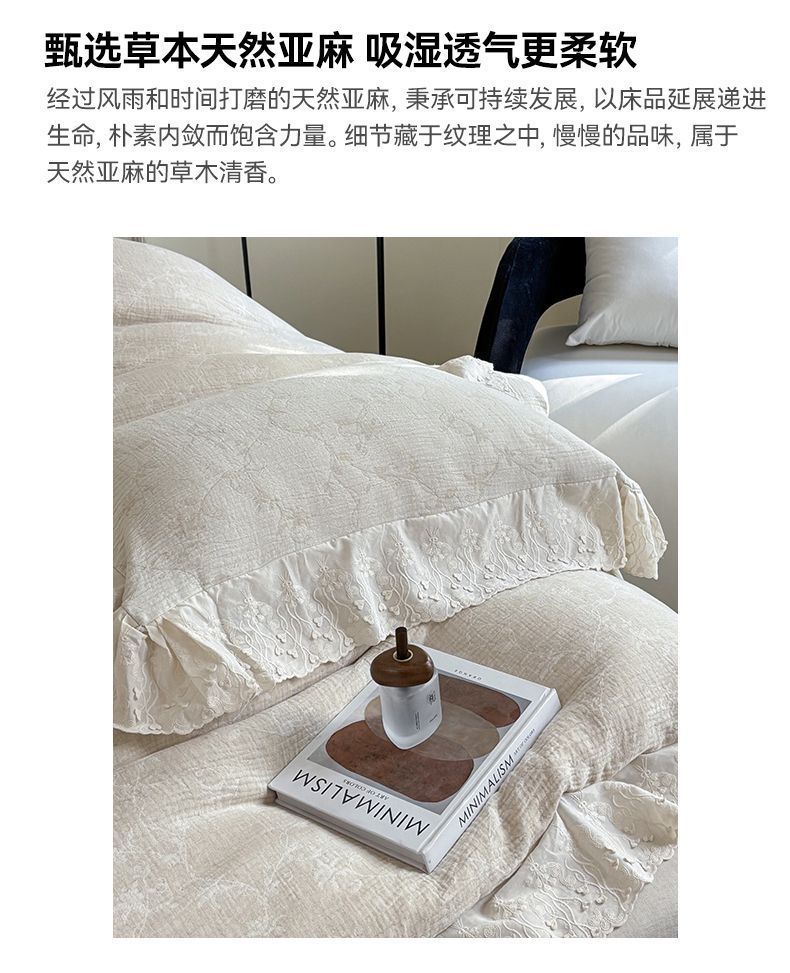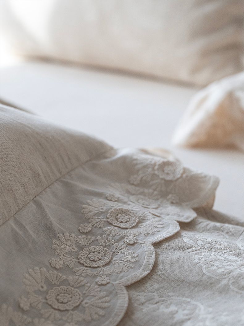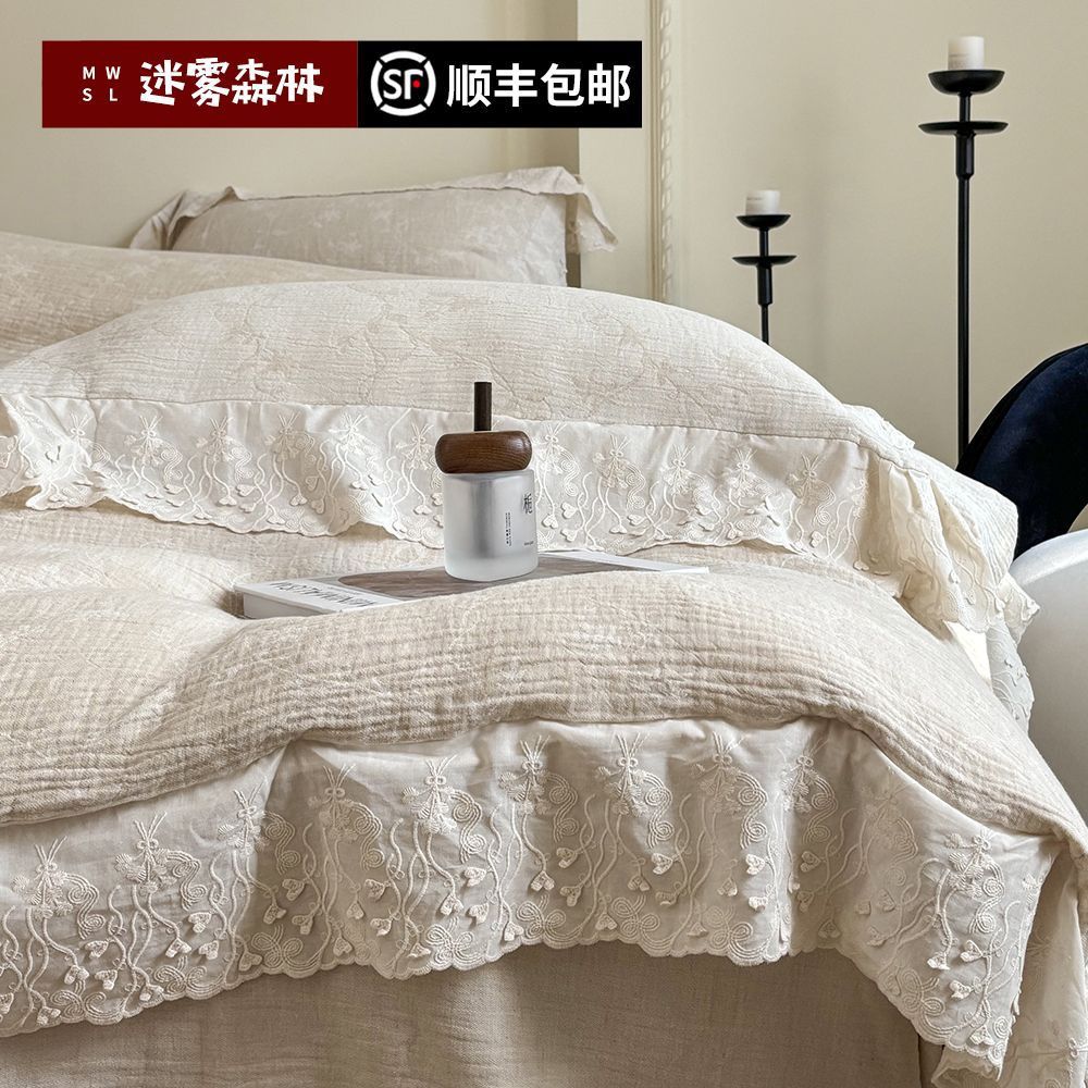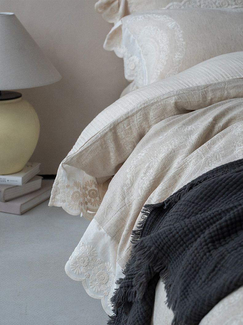 Французский элегантный комплект постельного белья с лилиями-медвежатниками, кружевной комплект из четырех предметов, класс А, деревенский стиль, хлопок и лен, пододеяльник для B&B.