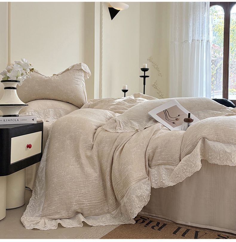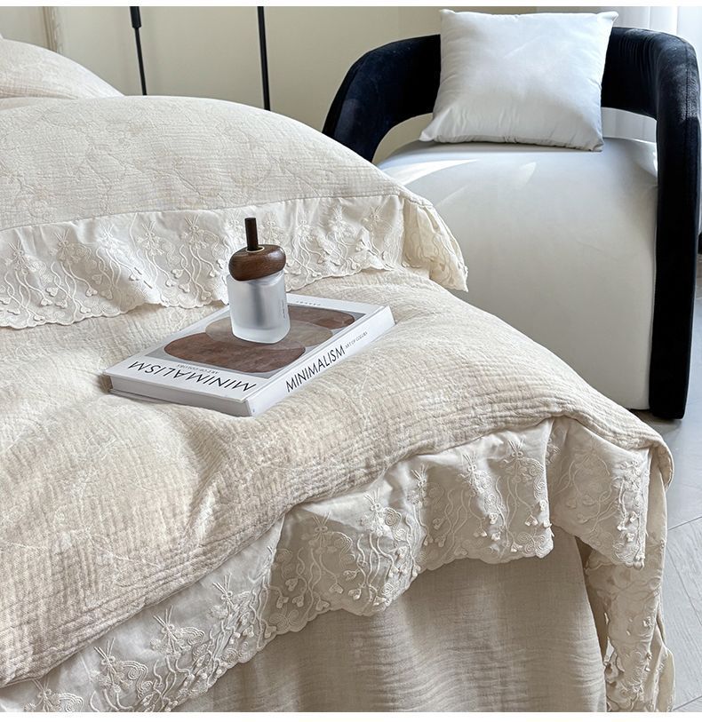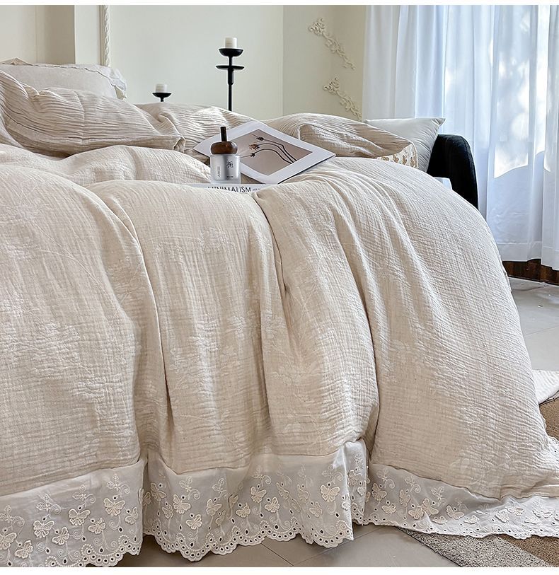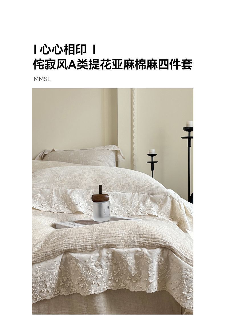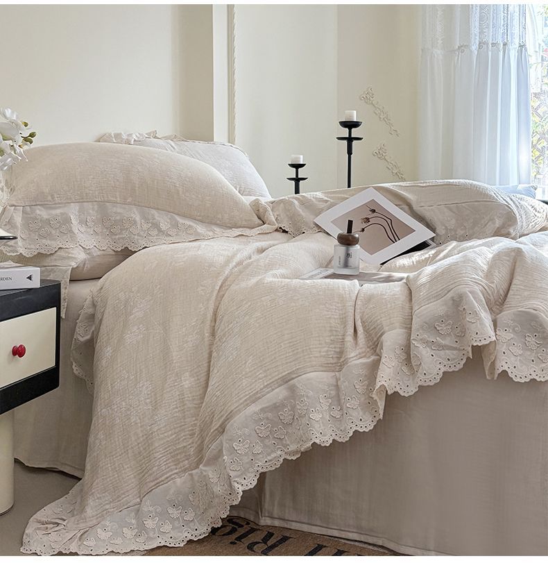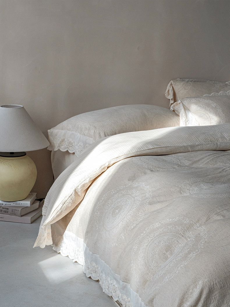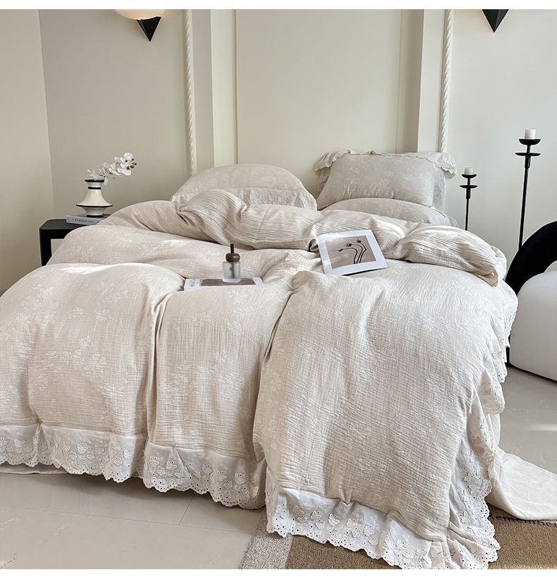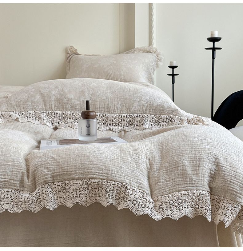 Французский элегантный комплект постельного белья с лилиями-медвежатниками, кружевной комплект из четырех предметов, класс А, деревенский стиль, хлопок и лен, пододеяльник для B&B.