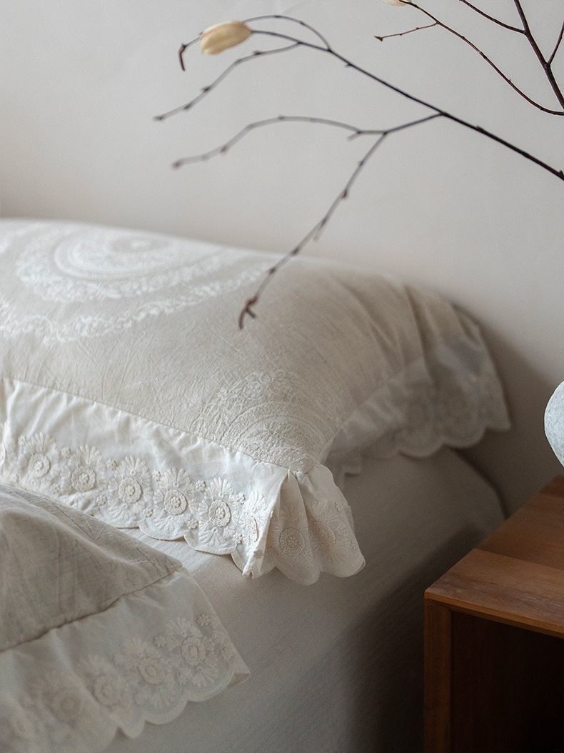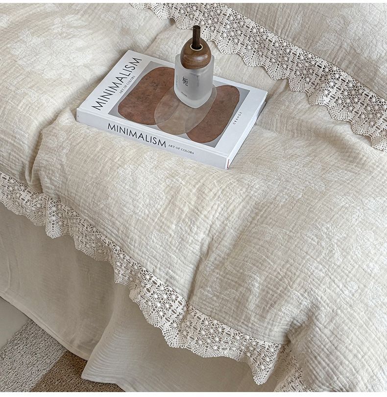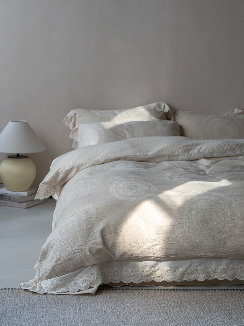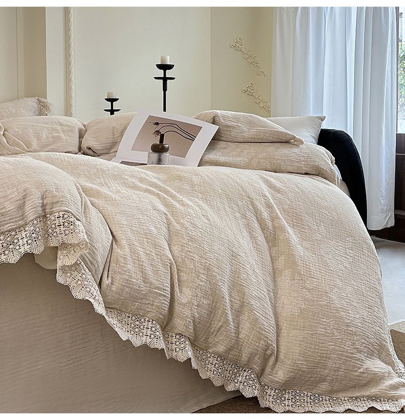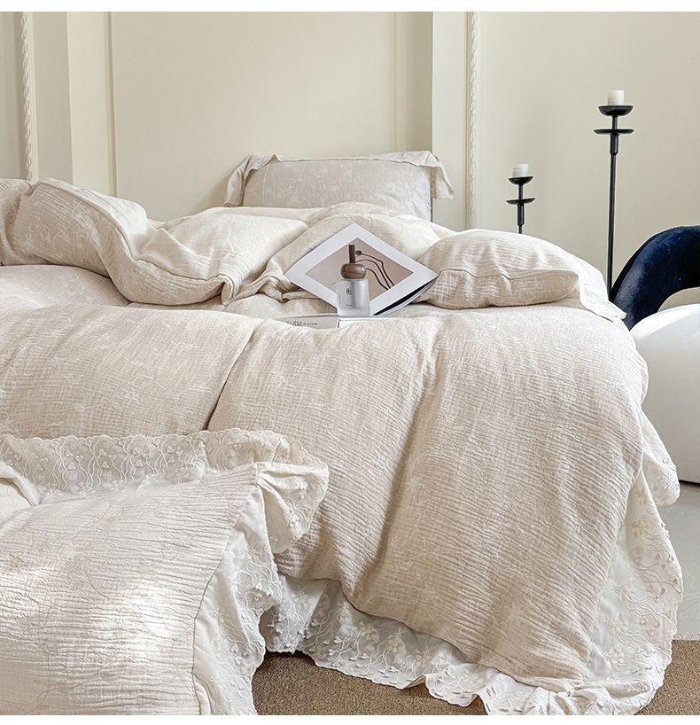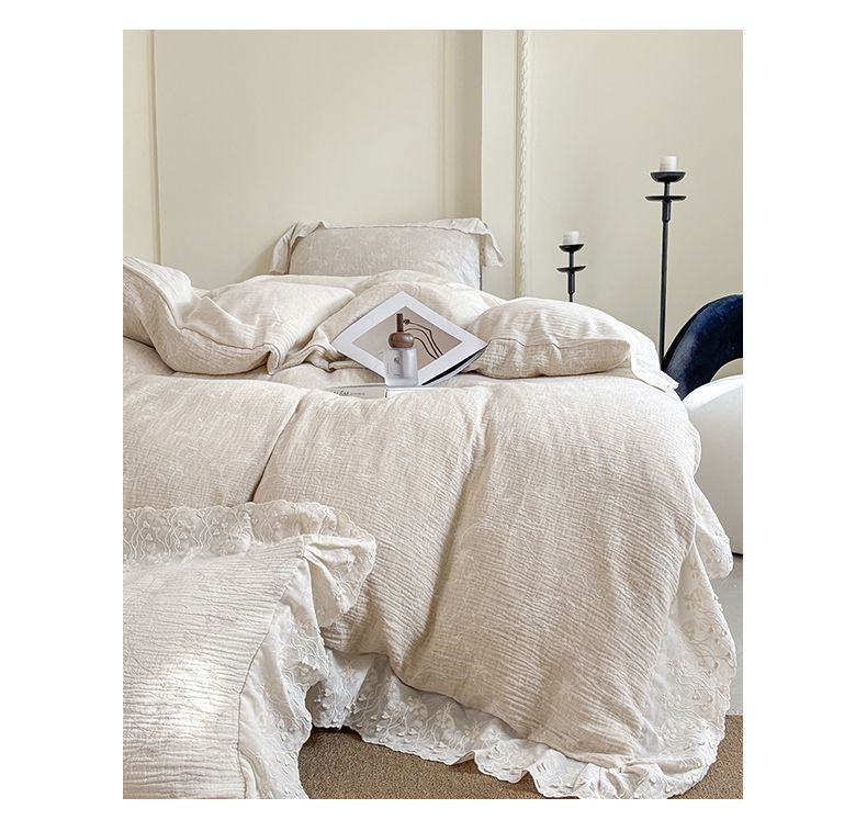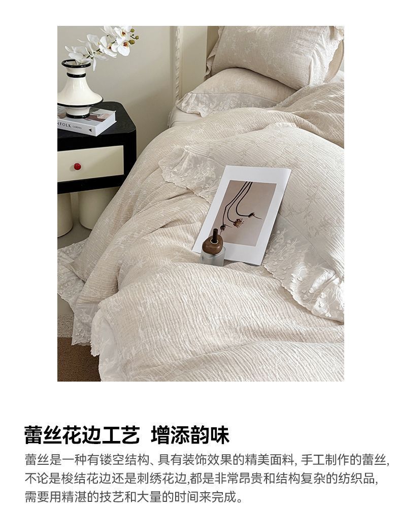 Французский элегантный комплект постельного белья с лилиями-медвежатниками, кружевной комплект из четырех предметов, класс А, деревенский стиль, хлопок и лен, пододеяльник для B&B.