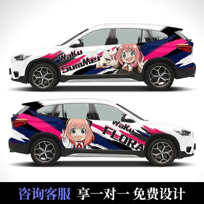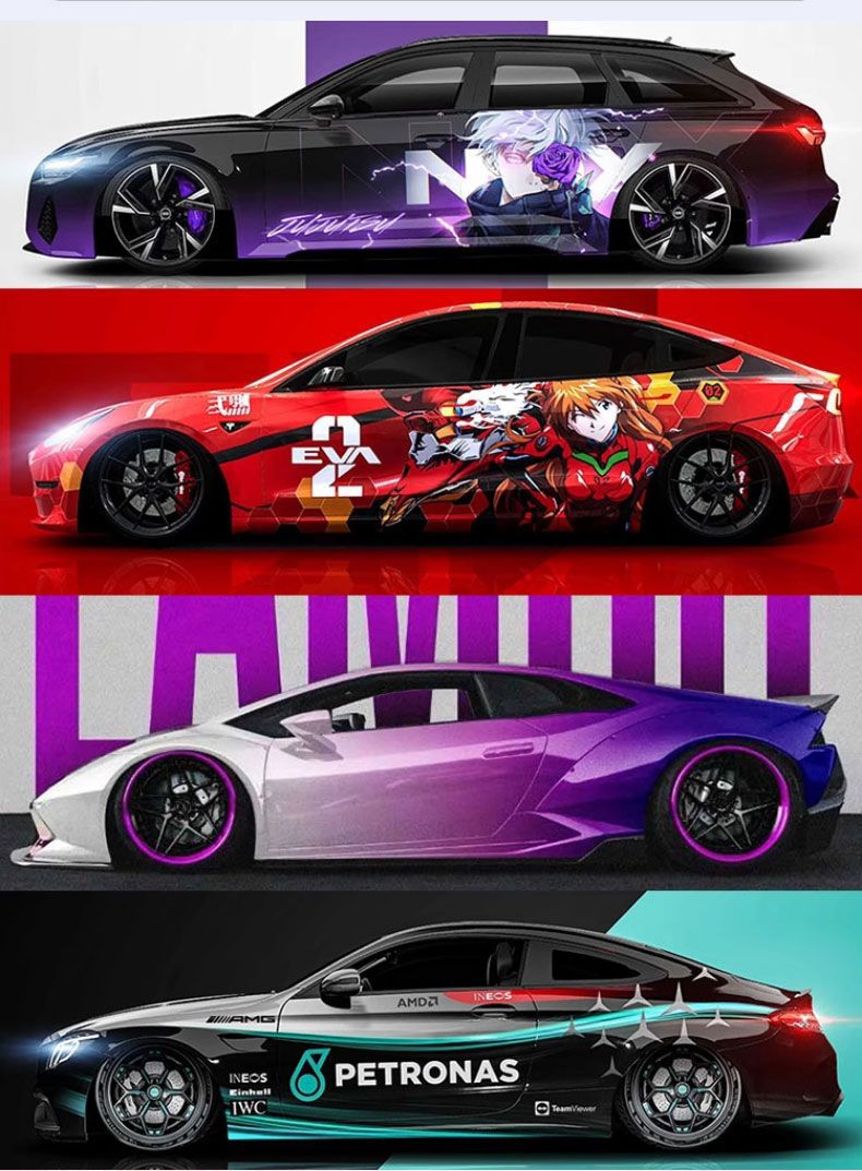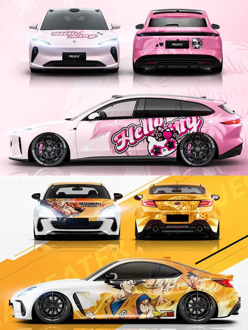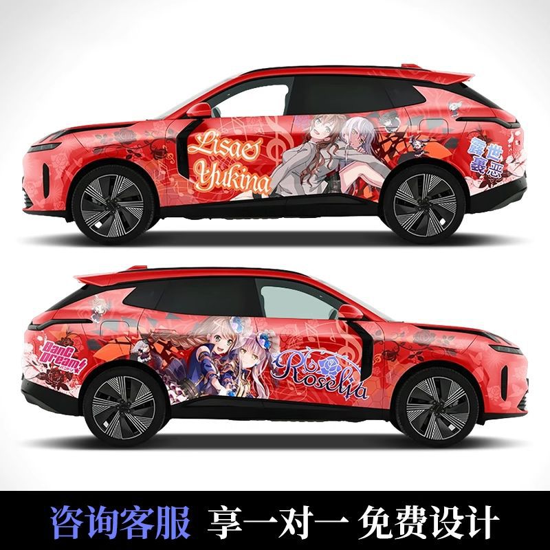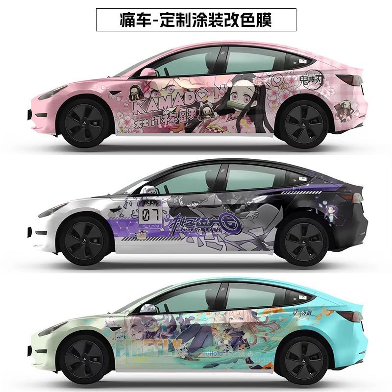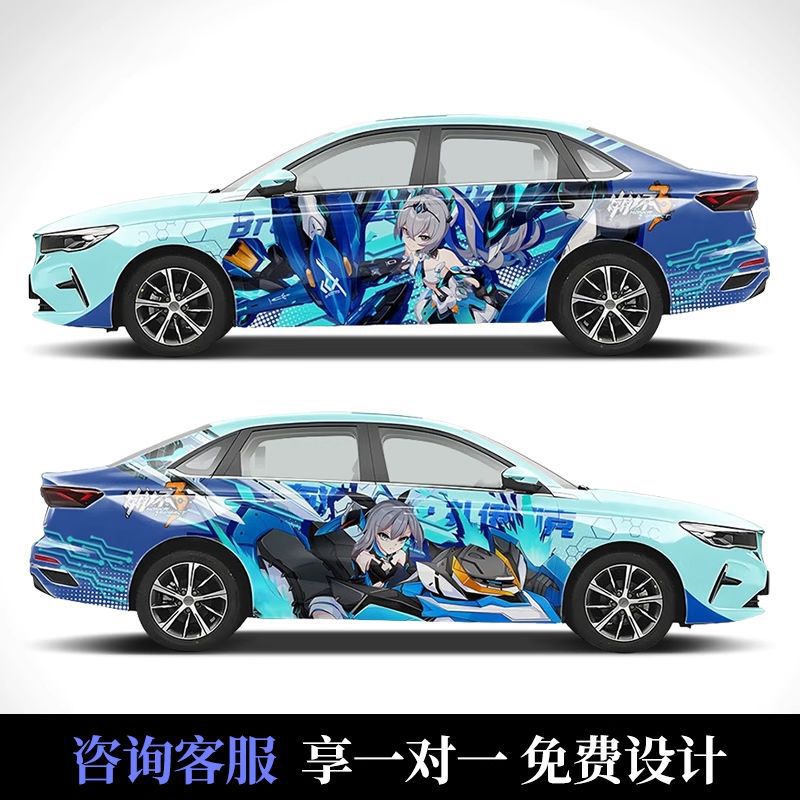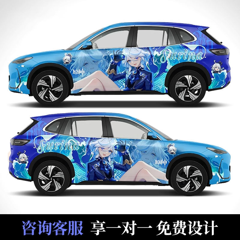 Подходит для автомобиля, персонализированный дизайн, двумерная цветная меняющаяся пленка Genshin, аниме, полная автомобильная пленка, граффити, окрашенная автомобильная пленка