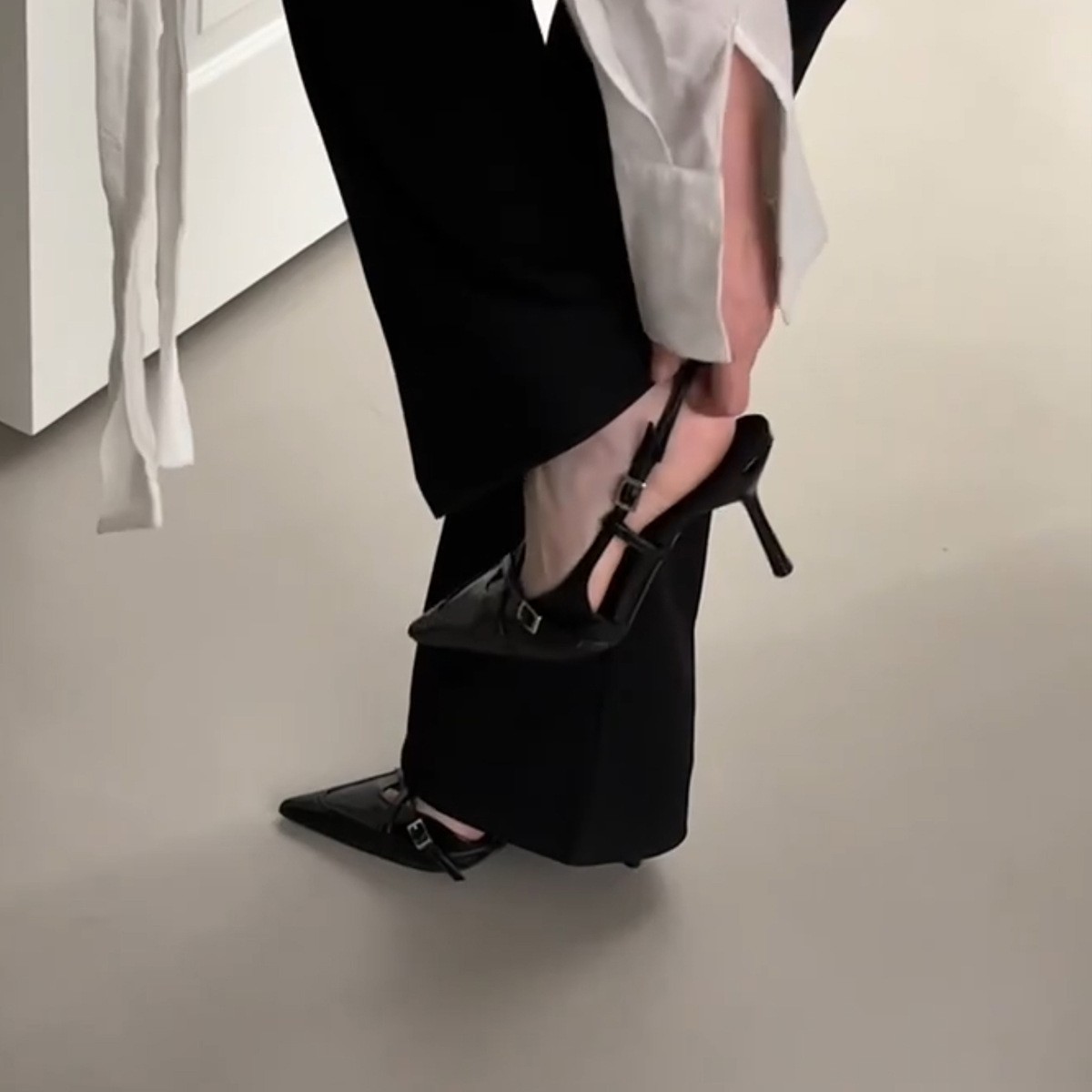 Женские босоножки на высоком каблуке-шпильке с заострённым носком, французский стиль, лето 2025, новые, сексуальные, с открытой пяткой.