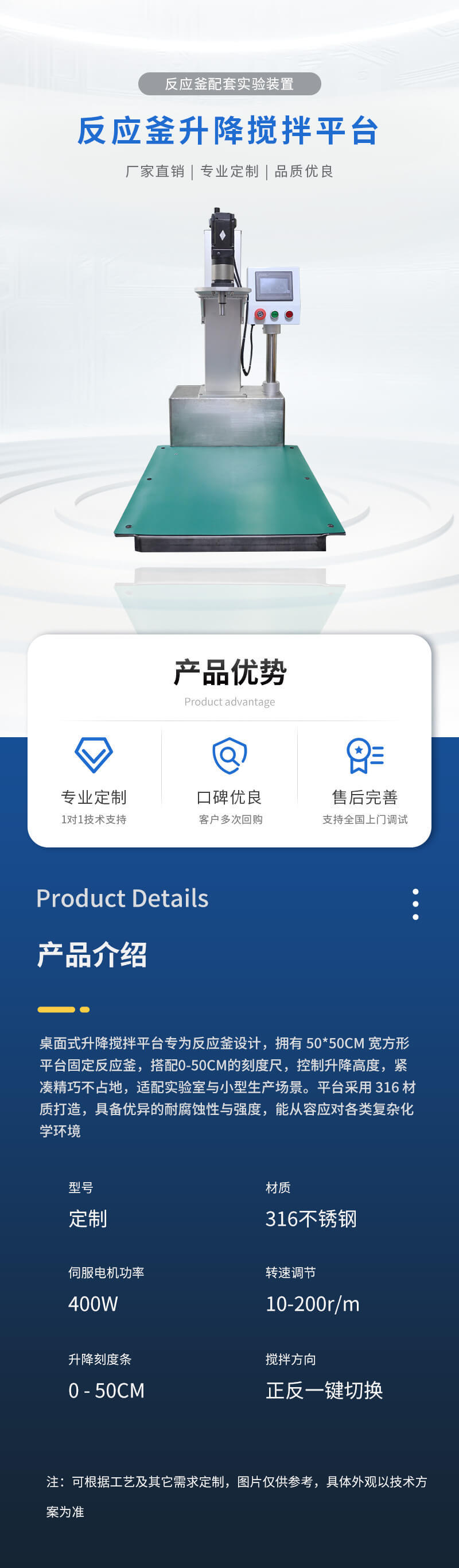 Устройство подъемной и мешалочной платформы реактора, лабораторное устройство для перемешивания, нестандартная настройка Sichuan Zhiyan Technology