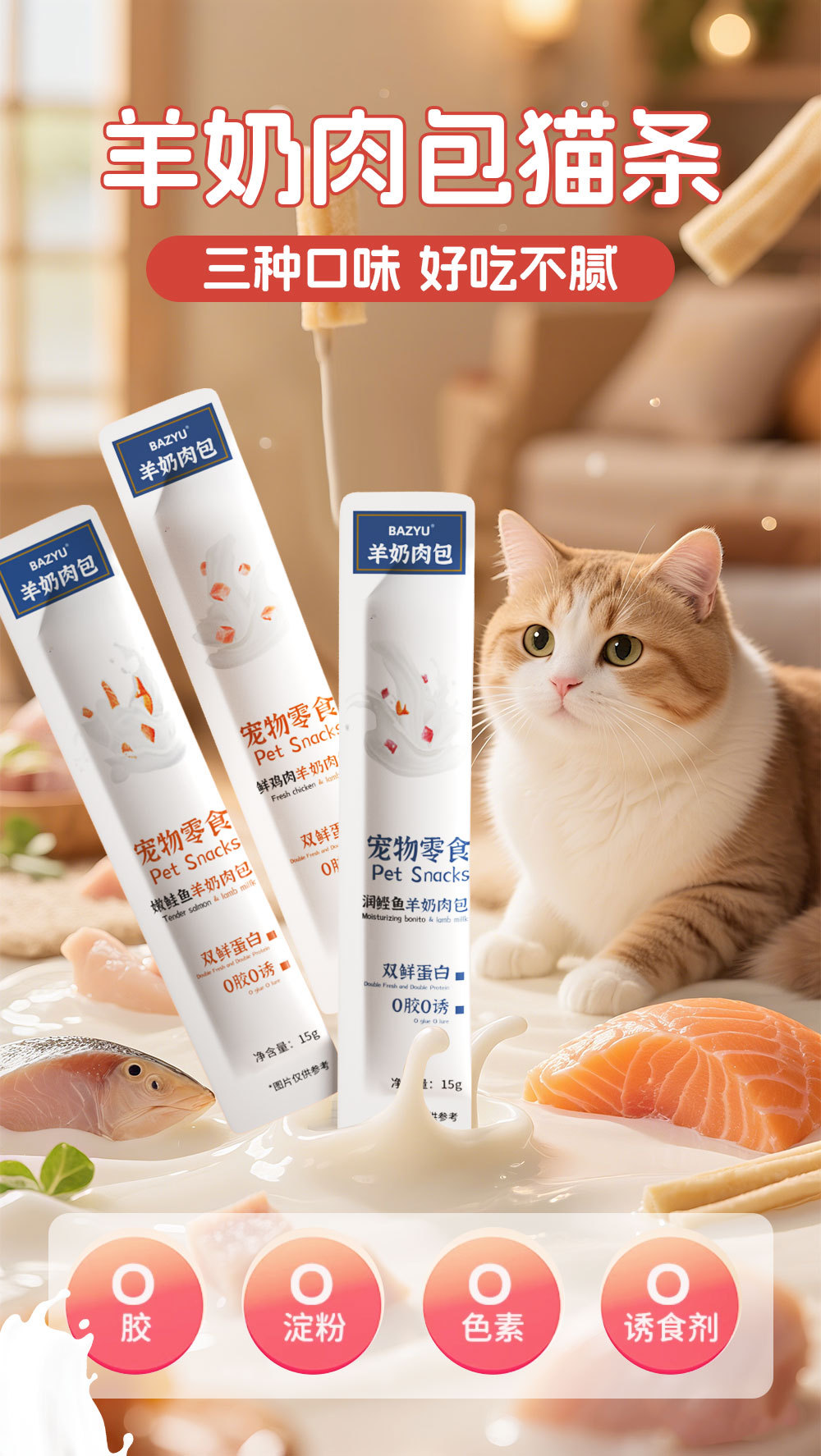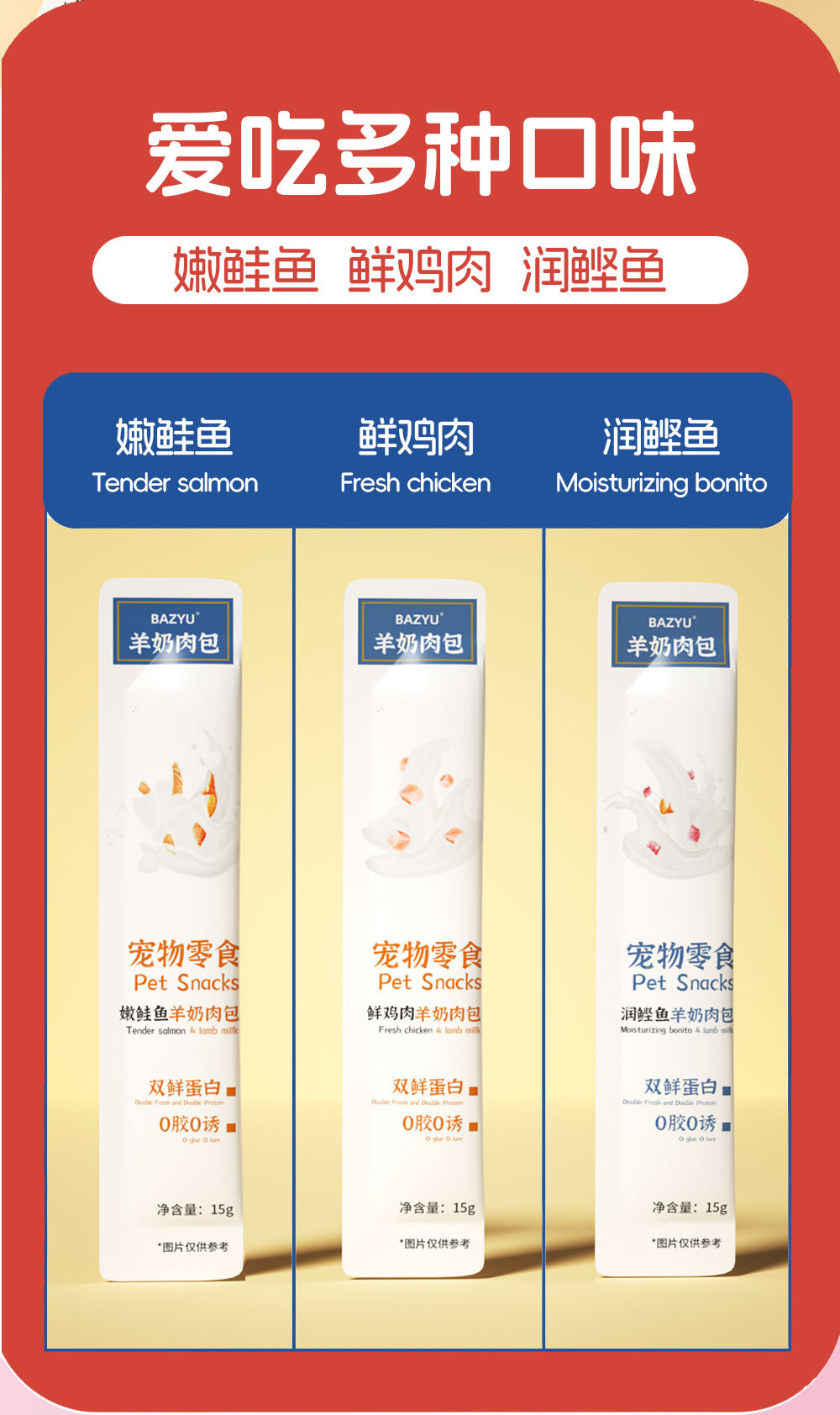 Бонито со вкусом козьего молока; Козье молоко с нежным вкусом лосося; Козье молоко с куриным вкусом