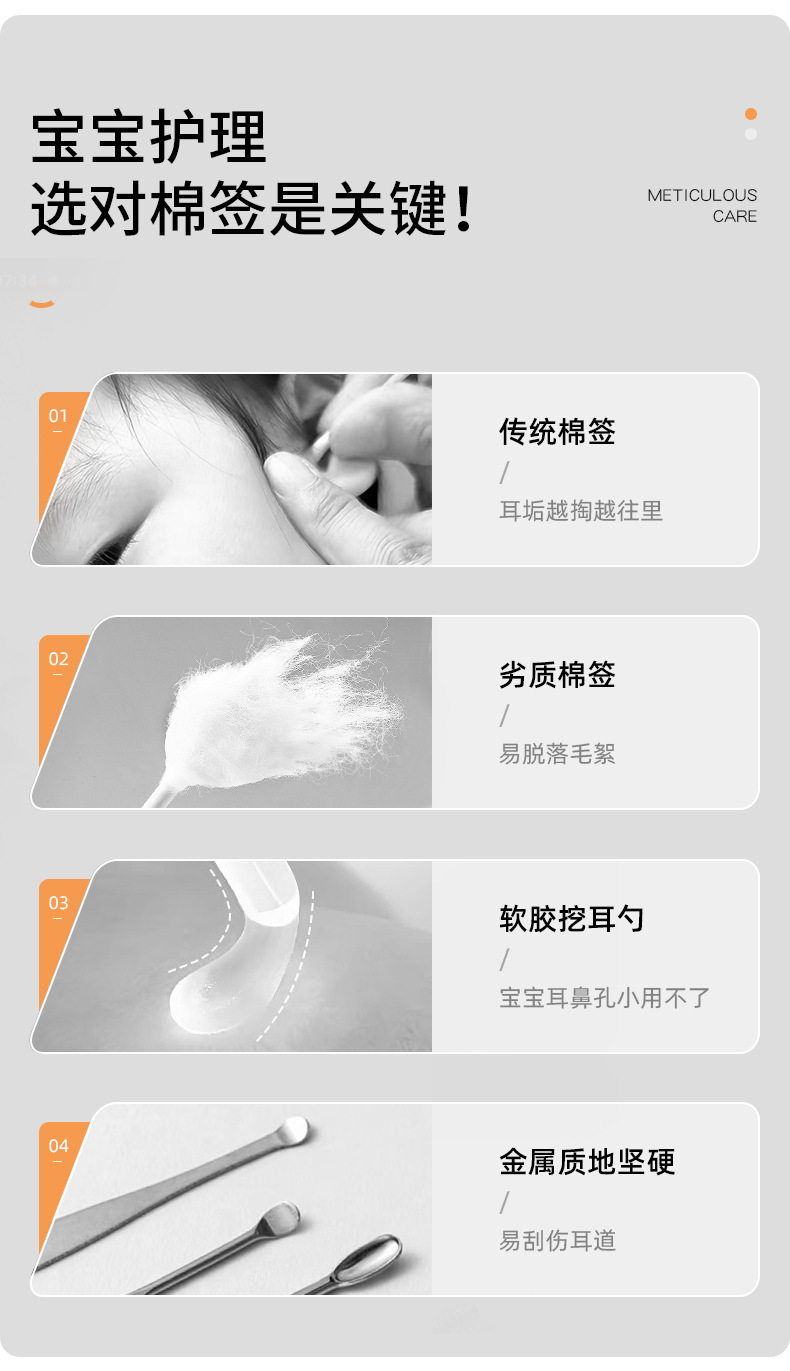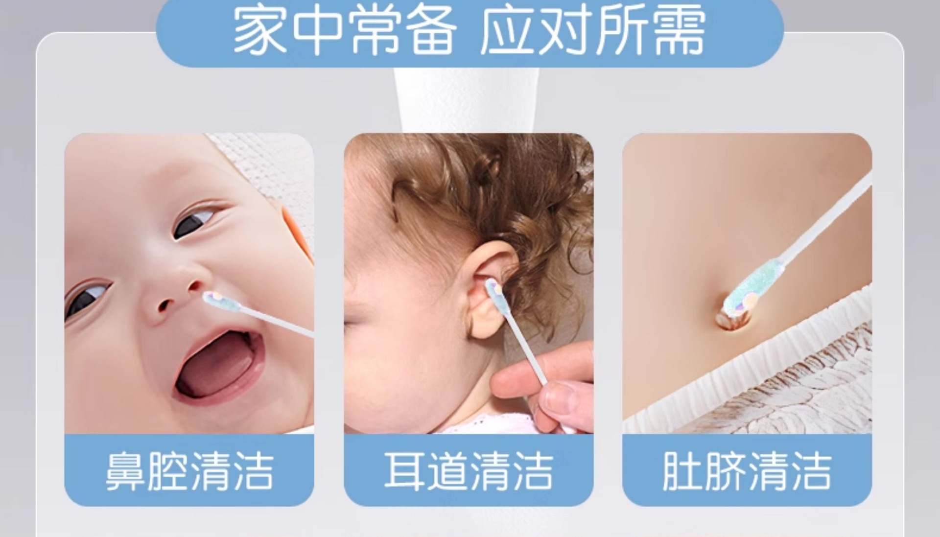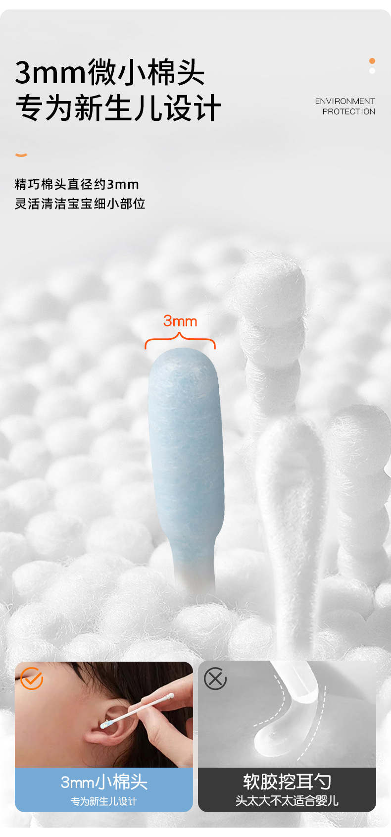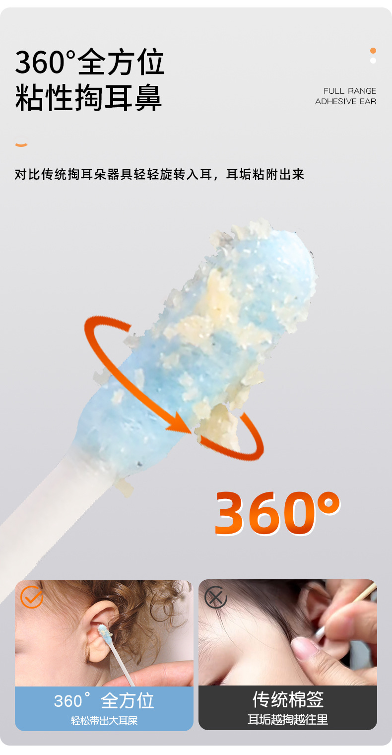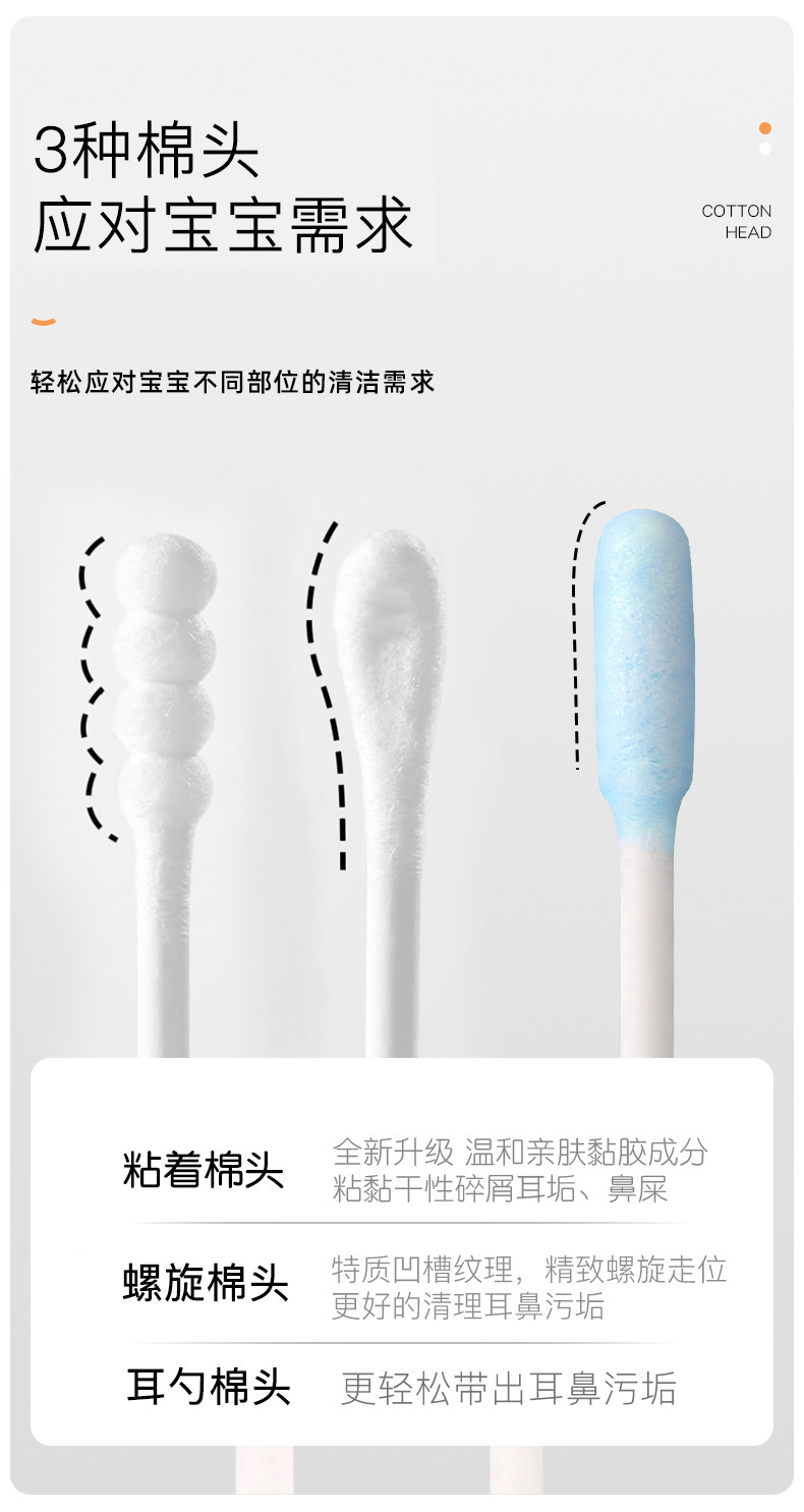 Детские липкие палочки для ушей [круглая липкая головка + головка-ложка для ушей] 50 шт./кор.; Детские липкие палочки для ушей [круглая липкая головка + спиральная головка] 50 шт./кор.