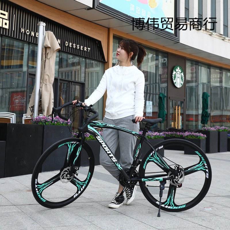 Велосипед с фиксированной передачей для взрослых, мужчин и женщин, гоночный шоссейный велосипед, с двойными дисковыми тормозами, студенческий велосипед, популярный онлайн, для поездок на работу.