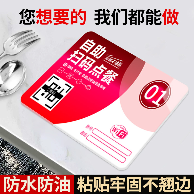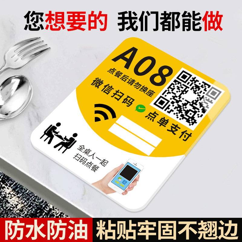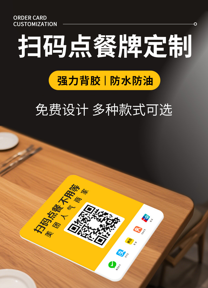 Сканируйте QR-код, чтобы заказать наклейку на стол с QR-кодом, настроить номер стола из акрила, настроить карточку заказа ресторана, заказать карточку стола.