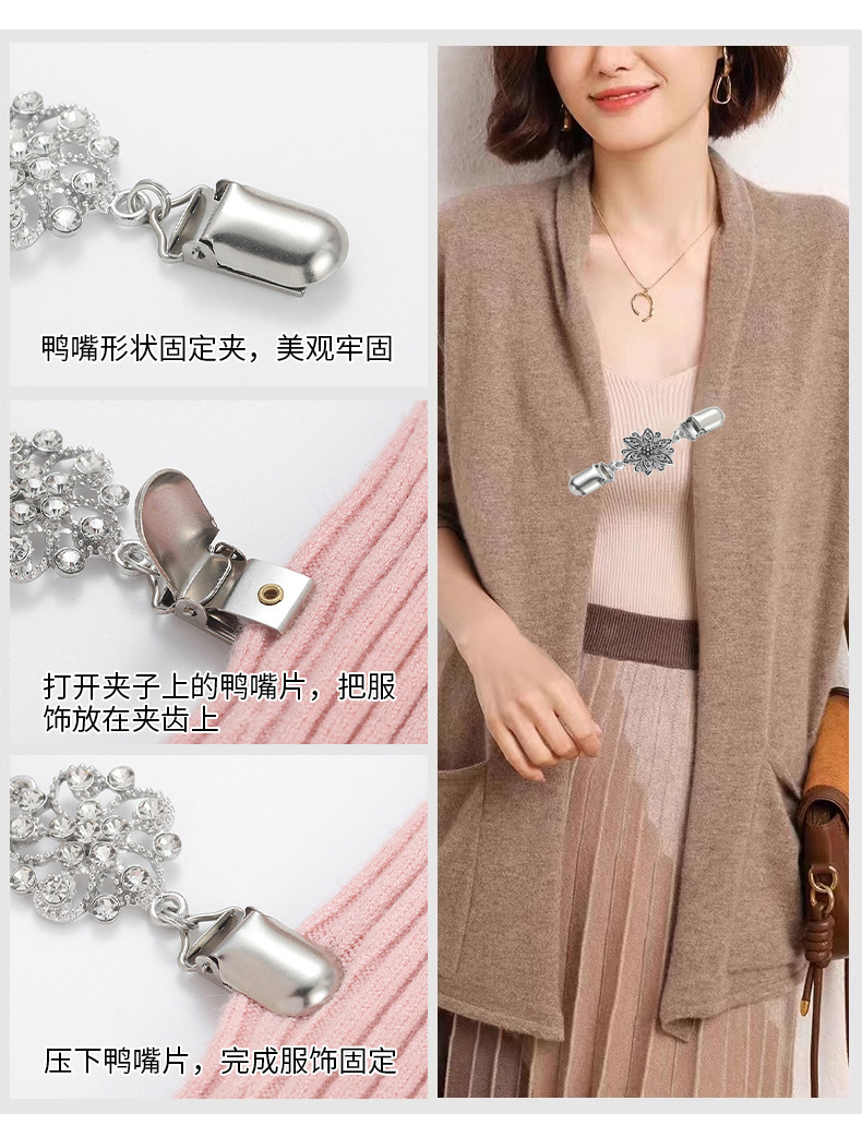 Зажим для шали, европейский и американский ретро-зажим для свитера, женский шелковый шарф, инкрустированный бриллиантами, пряжка, антиэкспозиционная брошь, воротник, зажим для шарфа, аксессуары из сплава