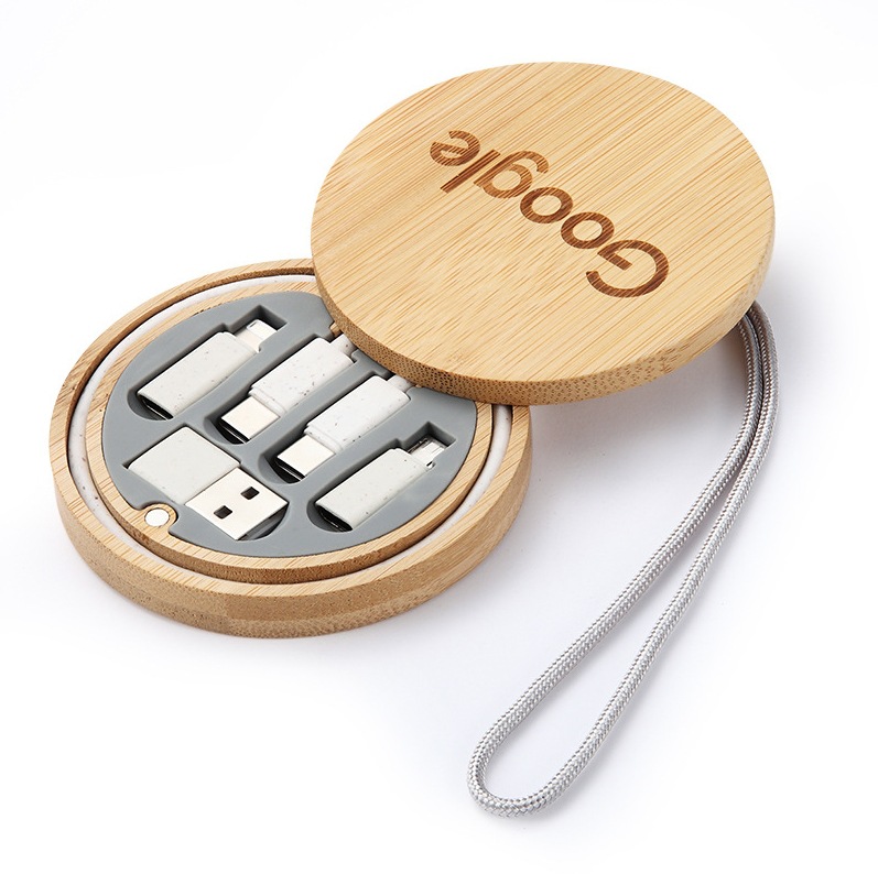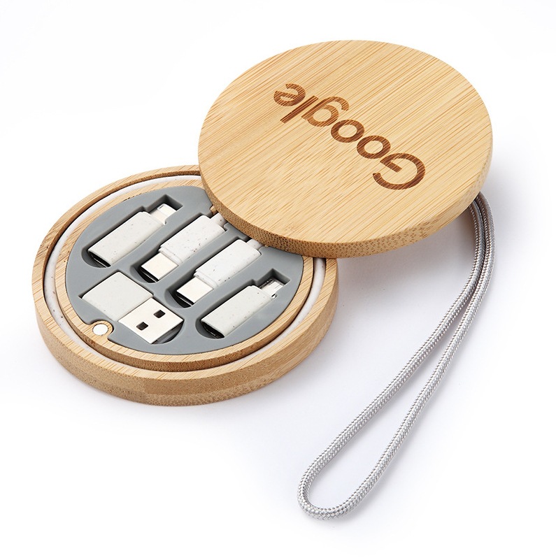 Универсальный кабель для зарядки данных в бамбуковой коробке 6-в-1, зажим для управления кабелем в бамбуковой коробке, биоразлагаемая соломинка, кабель для передачи данных мобильного телефона, деловые поездки