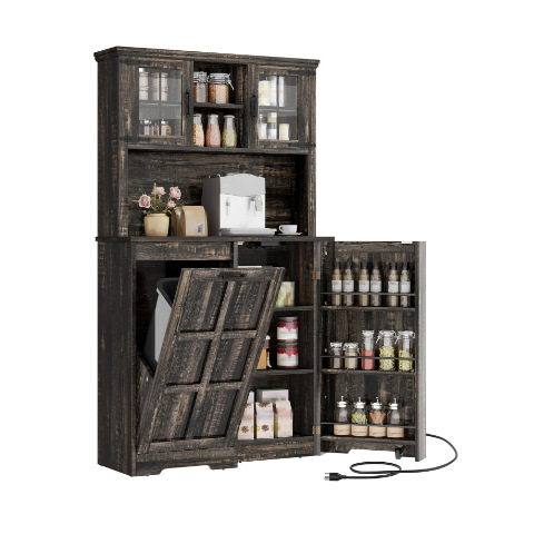 Лучший продаваемый на Amazon кухонный шкаф-панель с зарядной станцией, шкаф для хранения с наклонным мусорным баком, шкаф для продуктов.