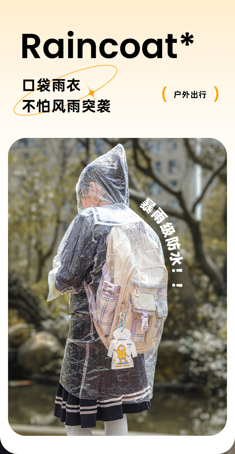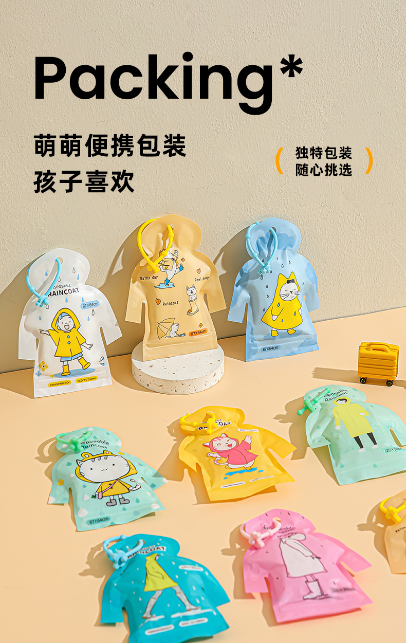 Одноразовый дождевик с мультяшным принтом, детский, для улицы, портативный, унисекс, модный, утолщенный, длинный, прозрачный дождевик