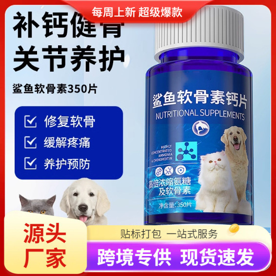 Таблетки с хондроитином и кальцием Shark для кошек и собак, специальные таблетки с кальцием для здоровья костей и суставов, добавка кальция для щенков, крупных, средних и маленьких собак