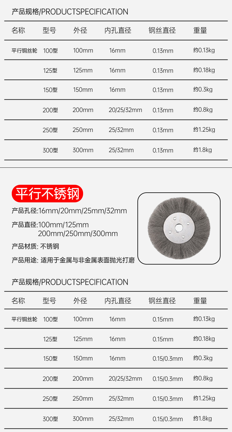 Тросовое колесо типа 100 (0,25 мм); Тросовое колесо типа 100 (0,3 мм); Тросовое колесо типа 125 (0,25 мм); Тросовое колесо типа 125 (0,3 мм); Тросовое колесо типа 150 (0,17 мм); Тип проволочного колеса 200-20 мм (0,3 мм); Тросовое колесо 200 тип 25мм (0,3мм; Тросовое колесо 200 тип 32мм (0,3мм); Тип проволочного колеса 250-25 мм (0,3 мм); Тип проволочного колеса 250-32 мм (0,3 мм); Тип проволочного колеса 300-25 мм (0,3 мм); Тип проволочного колеса 300-32 мм (0,3 мм); Медный проволочный круг тип 100-16мм; Медный проволочный круг тип 125-16мм; Колесо из медной проволоки типа 150-16мм.; Медный проволочный круг тип 200-20мм; Медный проволочный круг тип 200-25мм; Медный проволочный круг тип 200-32мм; Медный проволочный круг тип 250-25мм; Колесо из медной проволоки типа 250-32мм.; Медный проволочный круг тип 300-25мм; Медный проволочный круг тип 300-32мм; Колесо из проволоки из нержавеющей стали типа 100-16 мм.; Колесо из проволоки из нержавеющей стали типа 125-16 мм.; Тросовое колесо из нержавеющей стали типа 150-16 мм (0,15 мм); Трос из нержавеющей стали типа 150-16 мм (0,3 мм); Трос из нержавеющей стали типа 200-20 мм (0,15 мм); Трос из нержавеющей стали типа 200-20 мм (0,3 мм); Трос из нержавеющей стали типа 200-25 мм (0,15 мм); Трос из нержавеющей стали типа 200-25 мм (0,3 мм); Трос из нержавеющей стали типа 200-32 мм (0,15 мм); Трос из нержавеющей стали типа 200-32 мм (0,3 мм); Трос из нержавеющей стали типа 250-25 мм (0,15 мм); Колесо из проволоки из нержавеющей стали типа 250-25 мм (0,3 мм); Тросовое колесо из нержавеющей стали типа 250-32 мм (0,15 мм); Трос из нержавеющей стали типа 250-32 мм (0,3 мм); Трос из нержавеющей стали типа 300-25 мм (0,15 мм); Трос из нержавеющей стали типа 300-25 мм (0,3 мм); Трос из нержавеющей стали типа 300-32 мм (0,15 мм); Колесо из проволоки из нержавеющей стали типа 300-32 мм (0,3 мм)