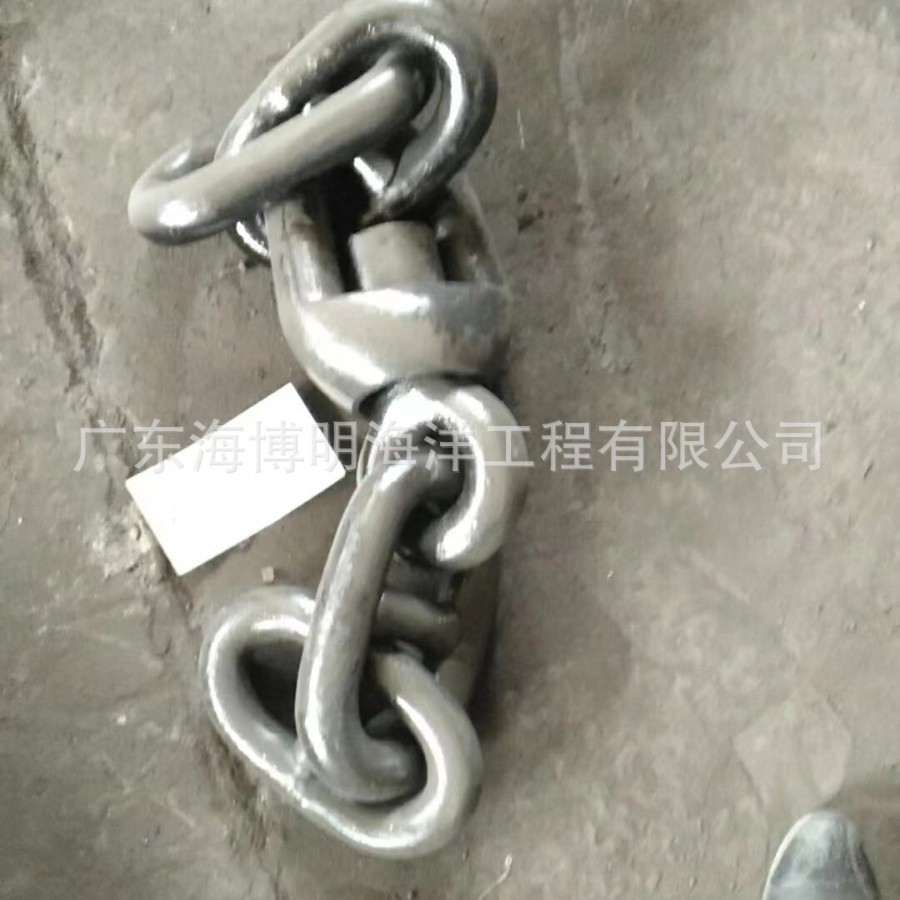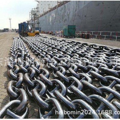 锚链由许多个链环衔接而成,大小以链径约(毫米)表示。依据链环中间有无撑档,分为有档锚链和无档锚链。锚链可用锻造、铸造和焊接等法制成。船用锚链由若干"节"(shackle)组成,每节长25.0~27.5米,节与节之间用链环或卸扣相连。绞起锚后,锚链储存在船首部的锚链舱内。锚链的规格,依照船舶建造标准计算肯定