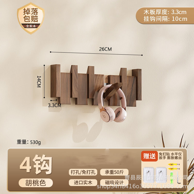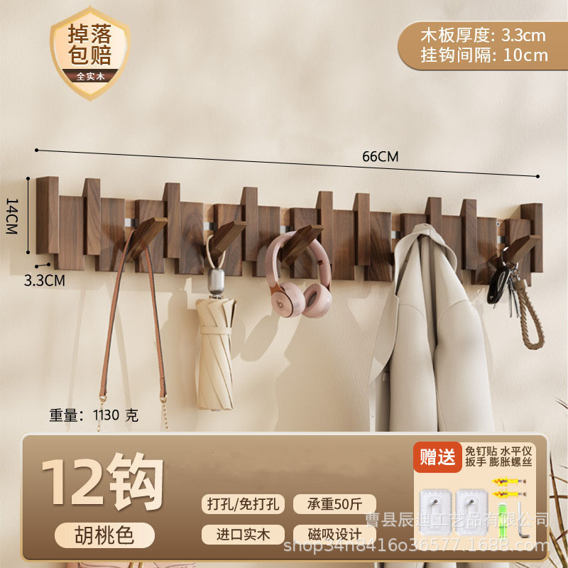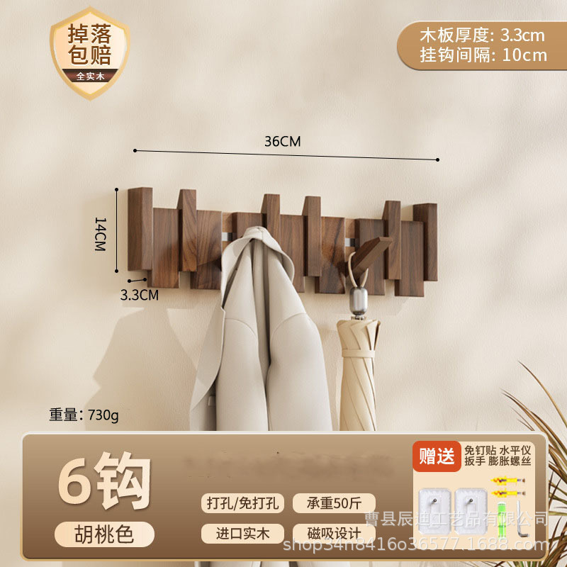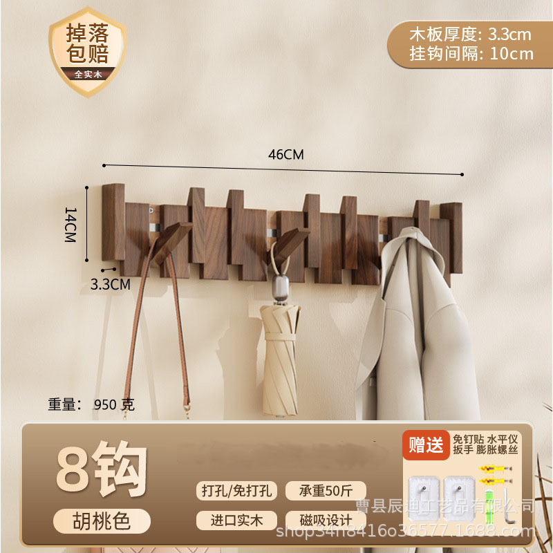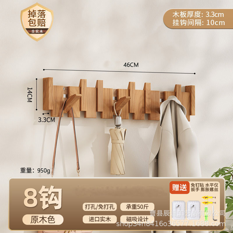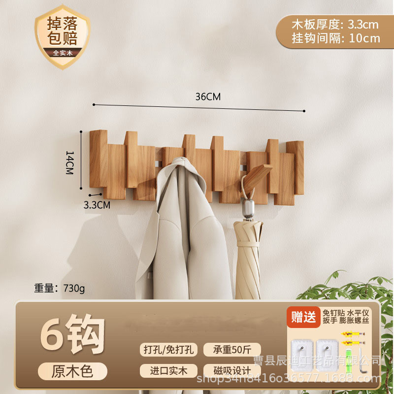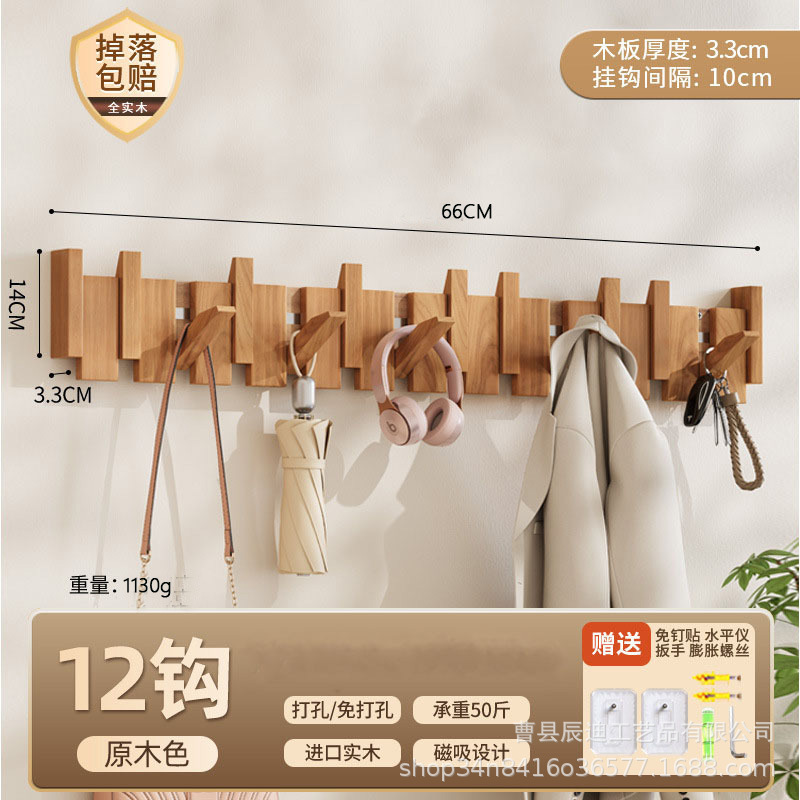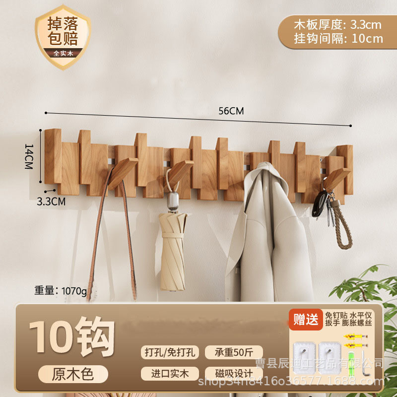 Скандинавская вешалка для одежды из цельного дерева без сверления для арендованных домов, настенный крючок для входной двери дома.