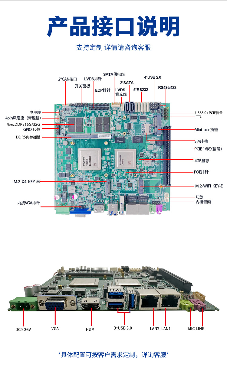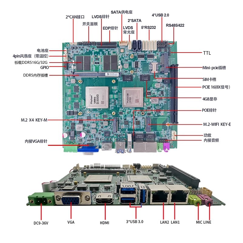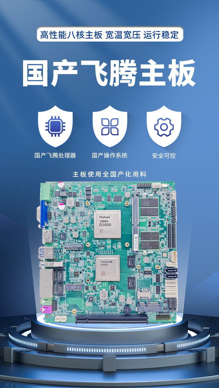 Промышленная материнская плата Lingjiang Xinchuang Feiteng D3000itx для промышленных компьютеров, широкотемпературная, с двумя сетевыми портами, 6 последовательными портами, LVDS