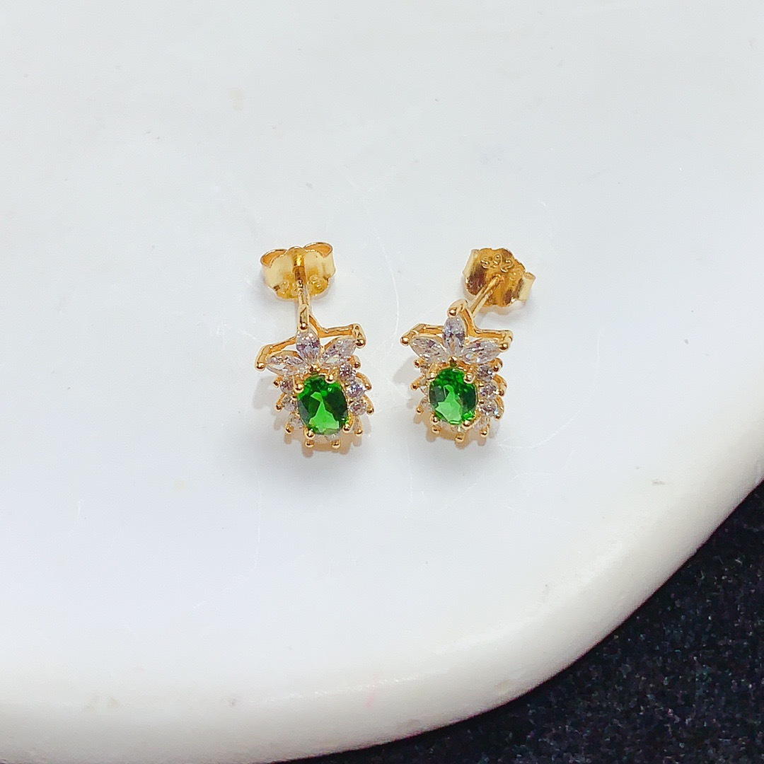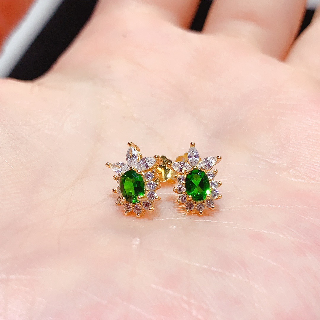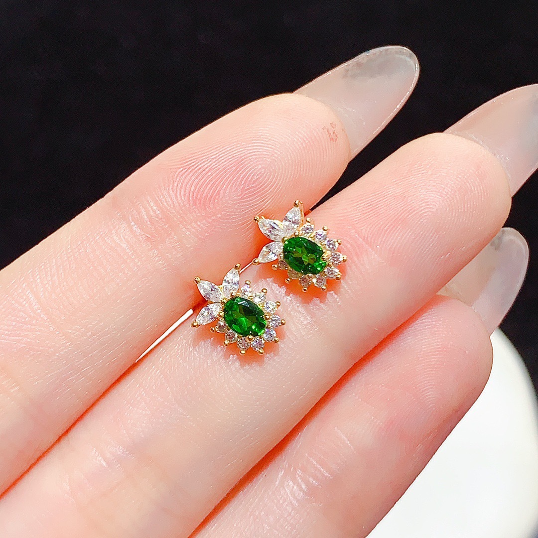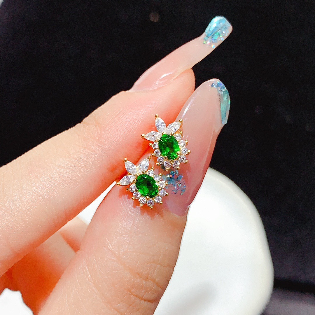 Серьги из стерлингового серебра 925 пробы с инкрустацией из натурального диопсида, модные изысканные универсальные красочные серьги-сокровища, женские украшения