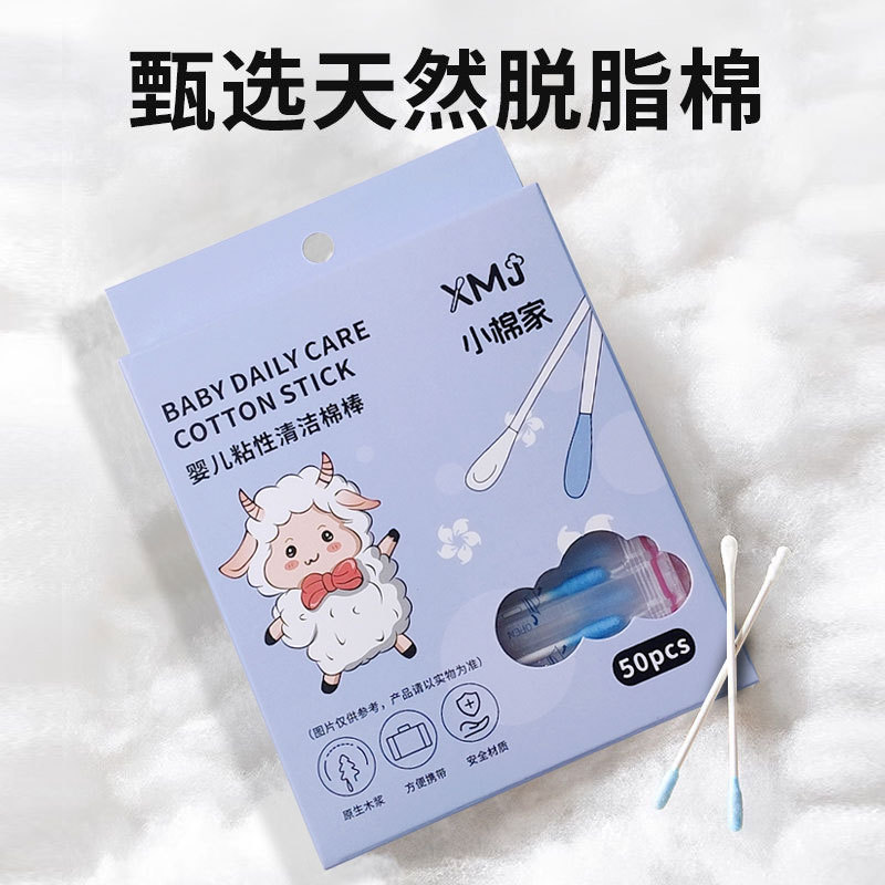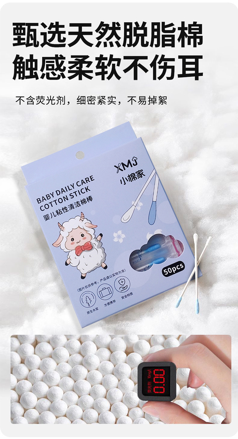 Детские липкие палочки для ушей [круглая липкая головка + головка-ложка для ушей] 50 шт./кор.; Детские липкие палочки для ушей [круглая липкая головка + спиральная головка] 50 шт./кор.