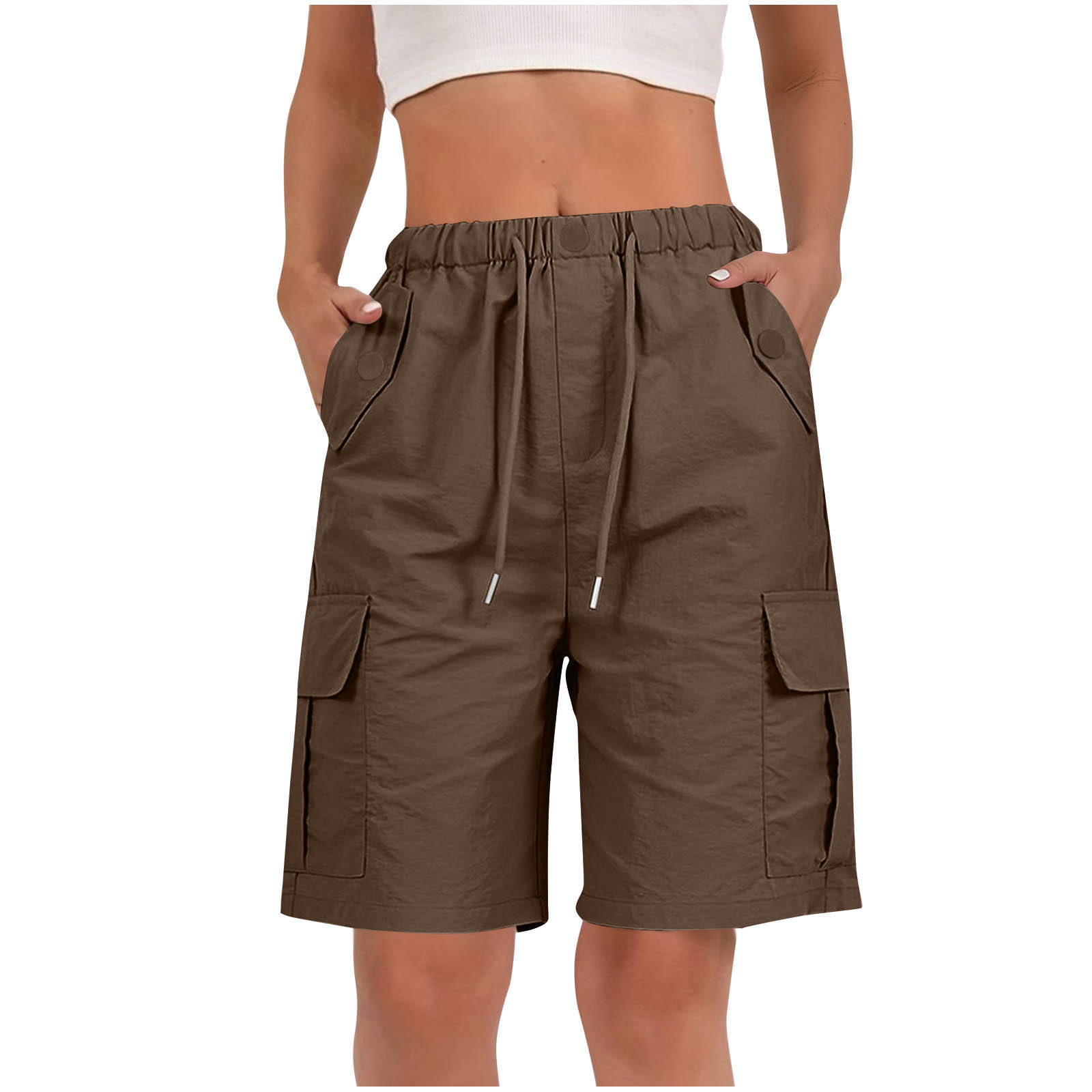 Amazon, летние повседневные шорты с высокой талией 2025, брюки-карго с карманами, модный тренд с завязками на пуговицах
