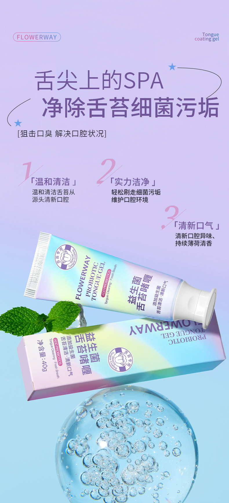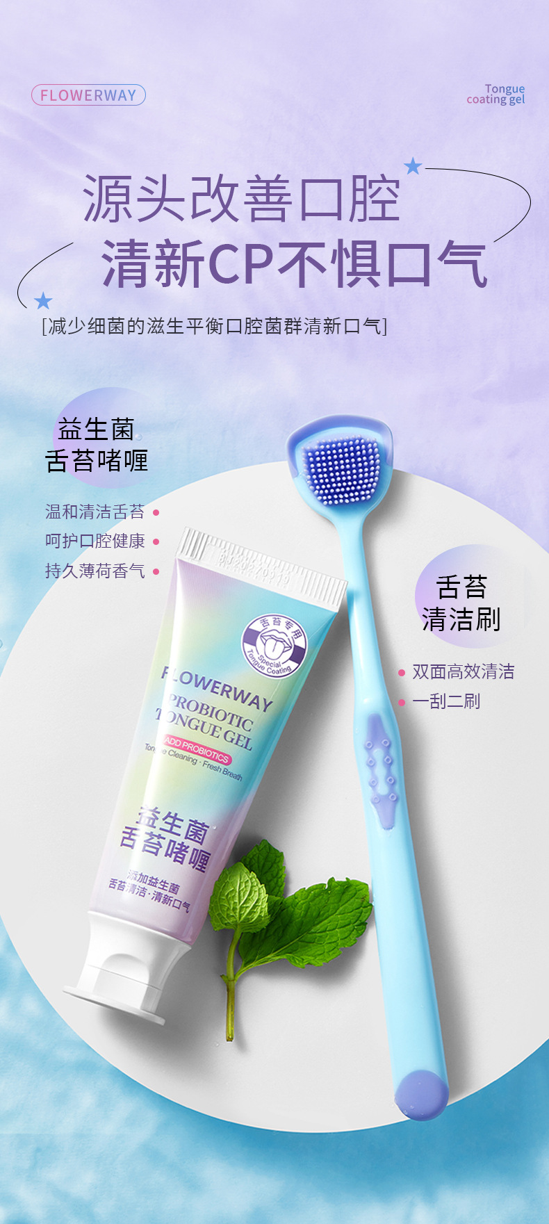 FLOWERWAY пробиотик гель для нанесения языка очиститель языка чистящий гель для нанесения запаха и свежести от производителя