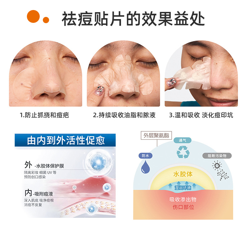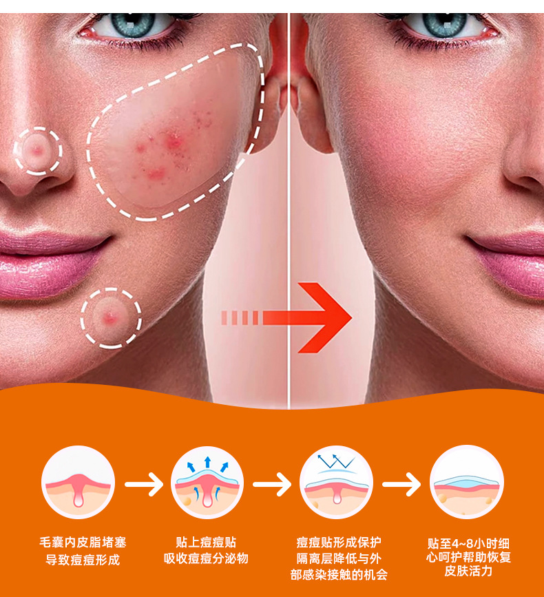 Наклейка на лицо (овальная); Накладка на подбородок (изогнутая); Пластырь от прыщей (круглый пластырь); Пластырь на лоб (прямоугольный); Наклейка на спине (квадратная); Цветная коробка пластыря от прыщей
