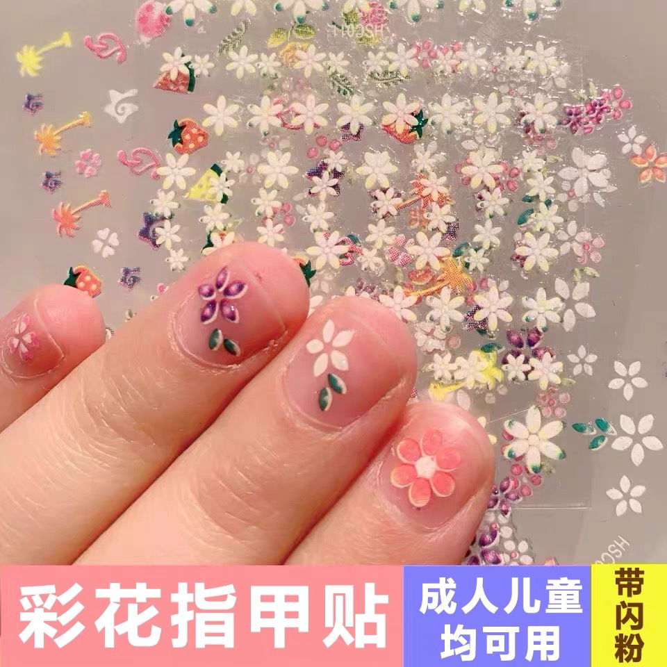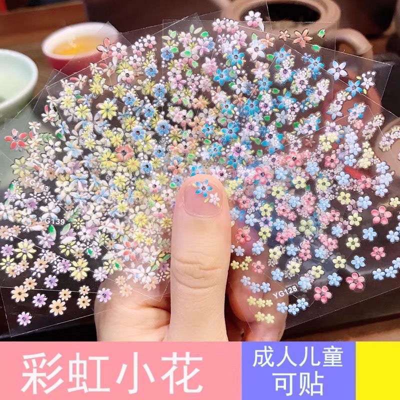 Трансграничные интернет-знаменитости, популярные розовые и белые цветочные наклейки с ореолом для окрашивания с клейкой основой, самоклеящиеся женские украшения для ногтей