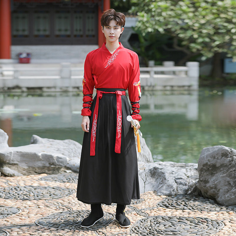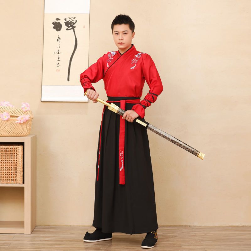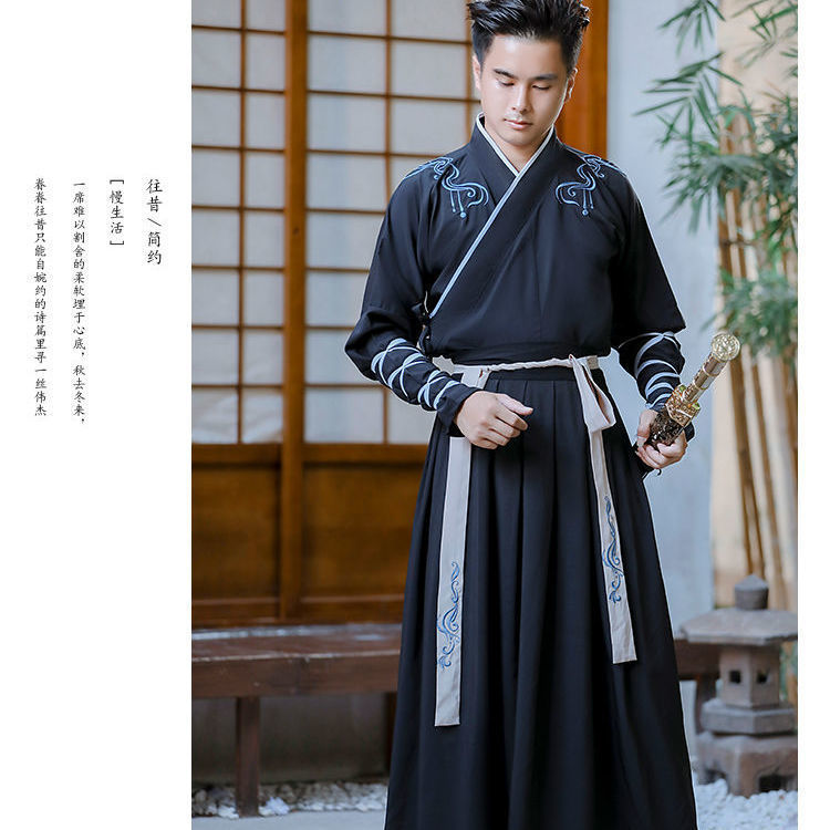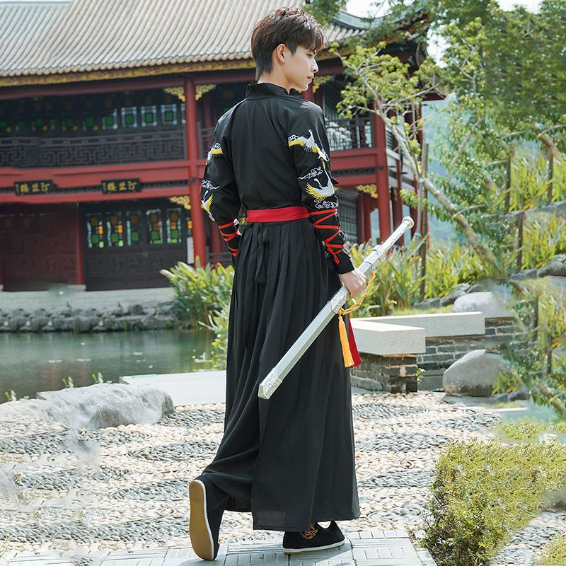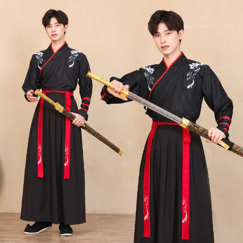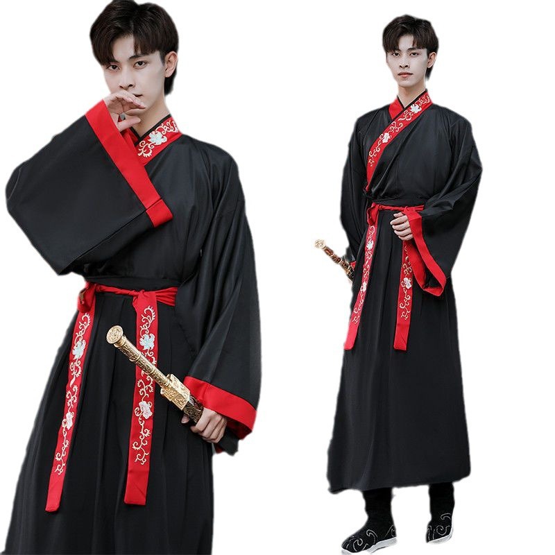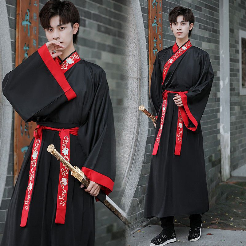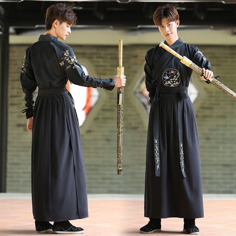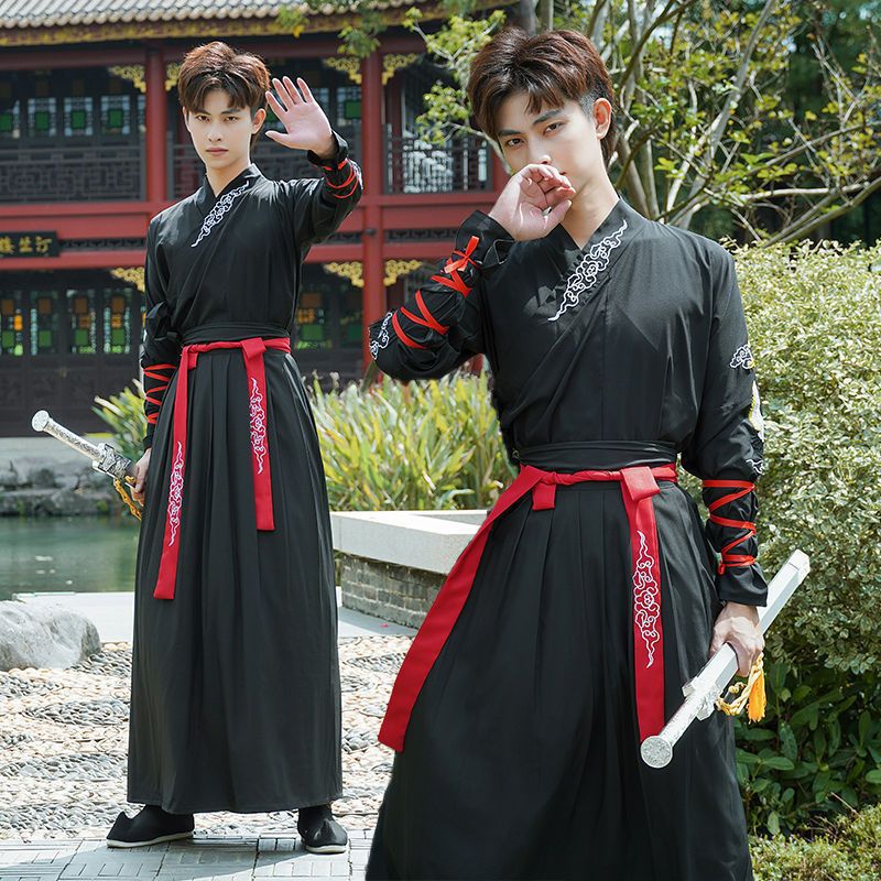 Мужской костюм Hanfu в китайском стиле, древний мечник по боевым искусствам, мужской костюм больших размеров, джентльменский древний костюм, черный властный женский студенческий класс, весенняя форма