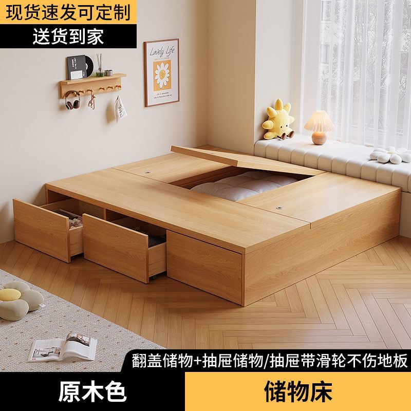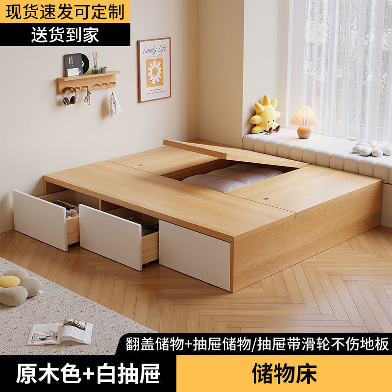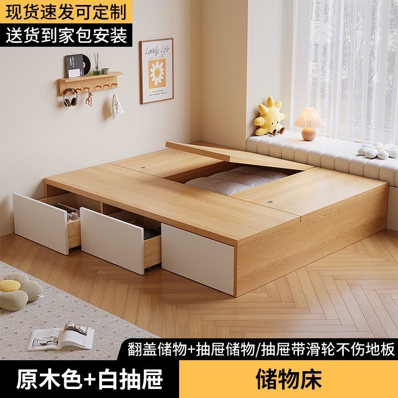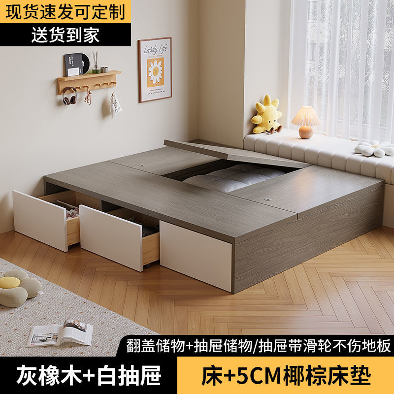Гардеробная кровать с татами, высокий ящик для хранения, двуспальная кровать, современная простая кровать с хранением, односпальная кровать для маленькой квартиры, возможна индивидуальная настройка.