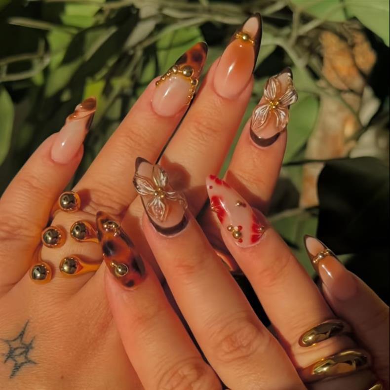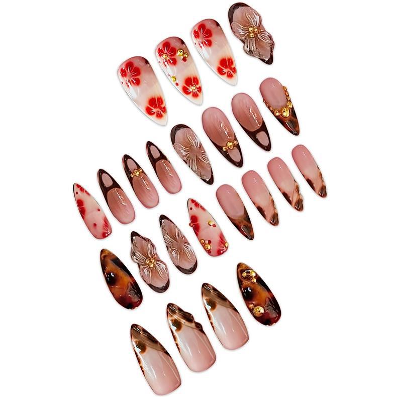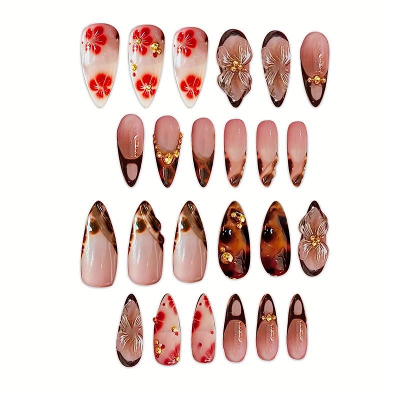 Трансграничные горячие продажи европейских и американских сладких и крутых цветов, украшенных жемчугом и стразами, маникюра, миндалевидные средние накладные ногти, готовая продукция оптом