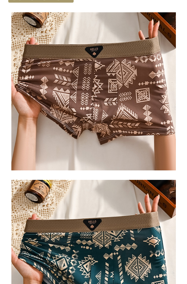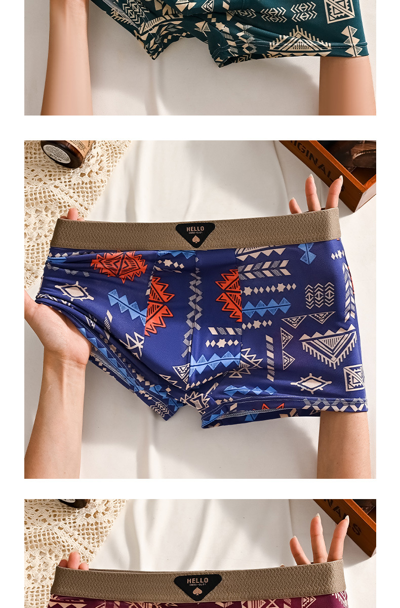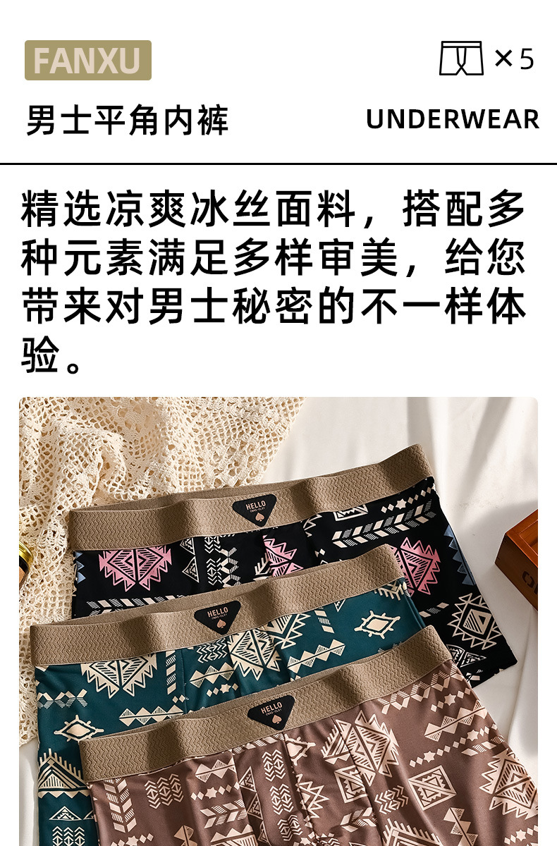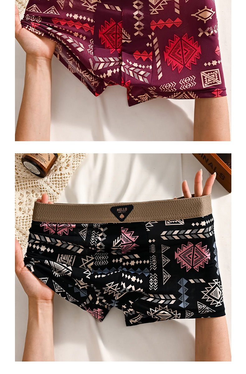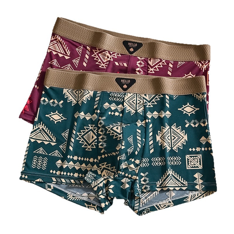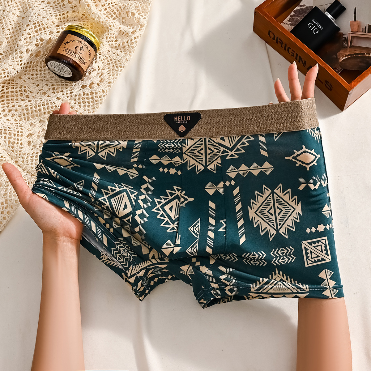 Мужское нижнее белье из ледяного шелка, спортивное молодежное тонкое дышащее летнее легкое и среднее талии, крутой большой размер, этнический стиль с принтом